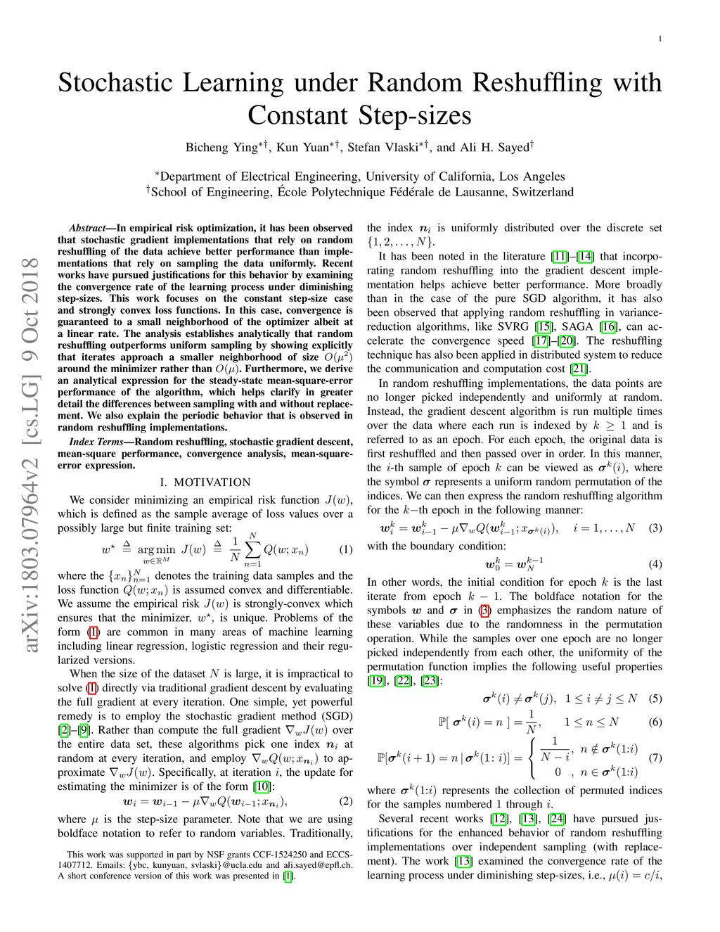 Stochastic Learning under Random Reshuffling with Constant Step-sizes