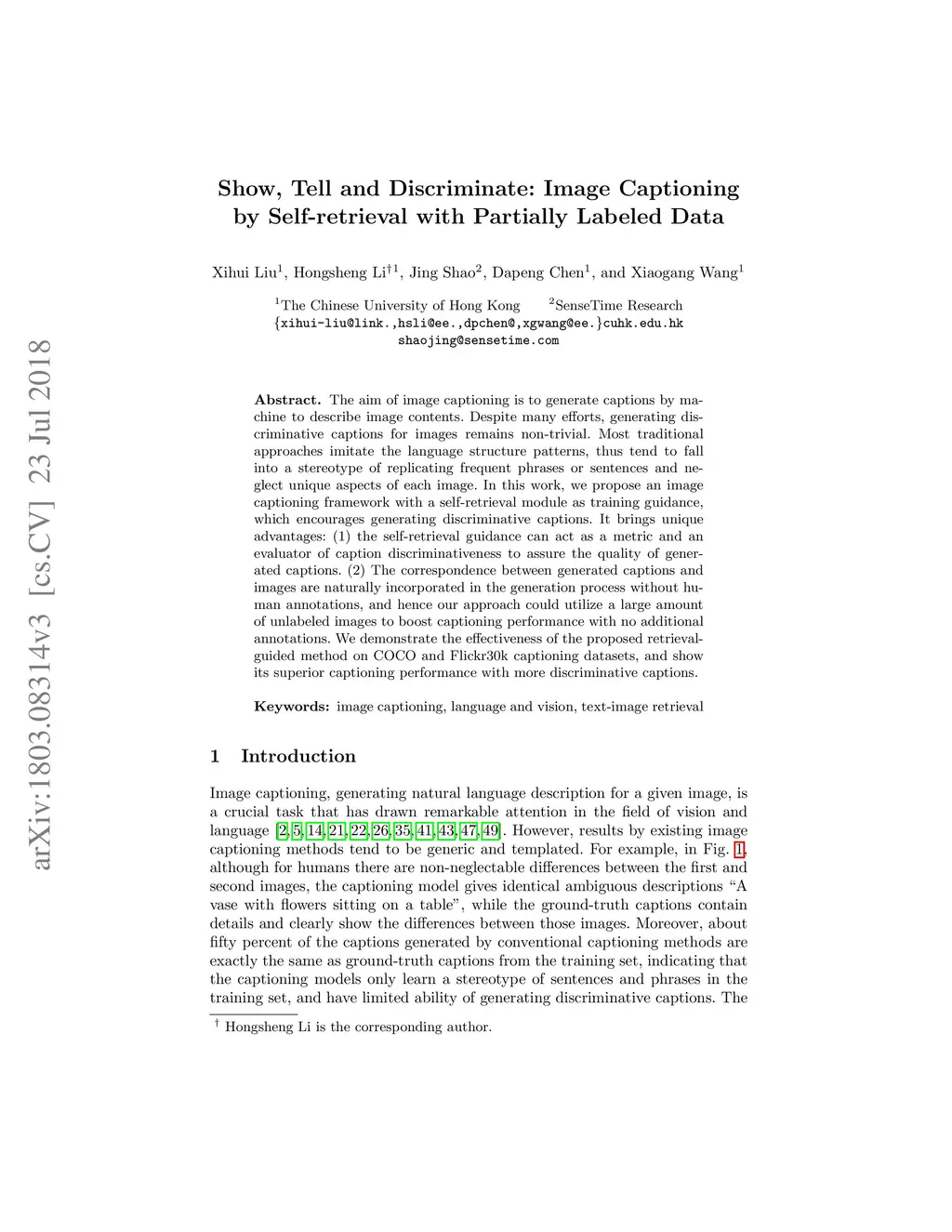 Show, Tell and Discriminate: Image Captioning by Self-retrieval with