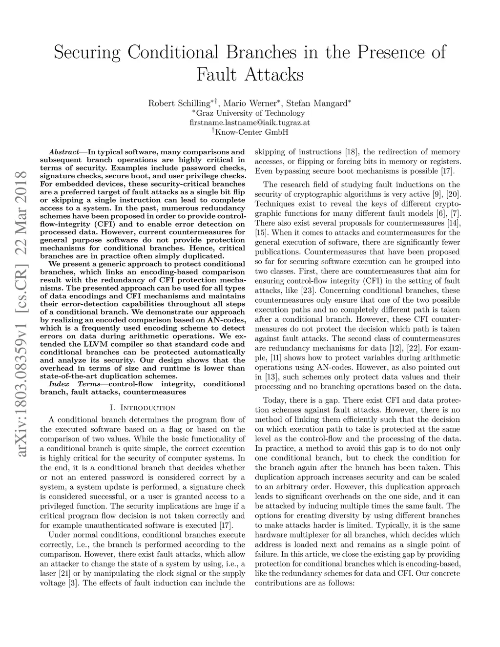 Securing Conditional Branches in the Presence of Fault Attacks