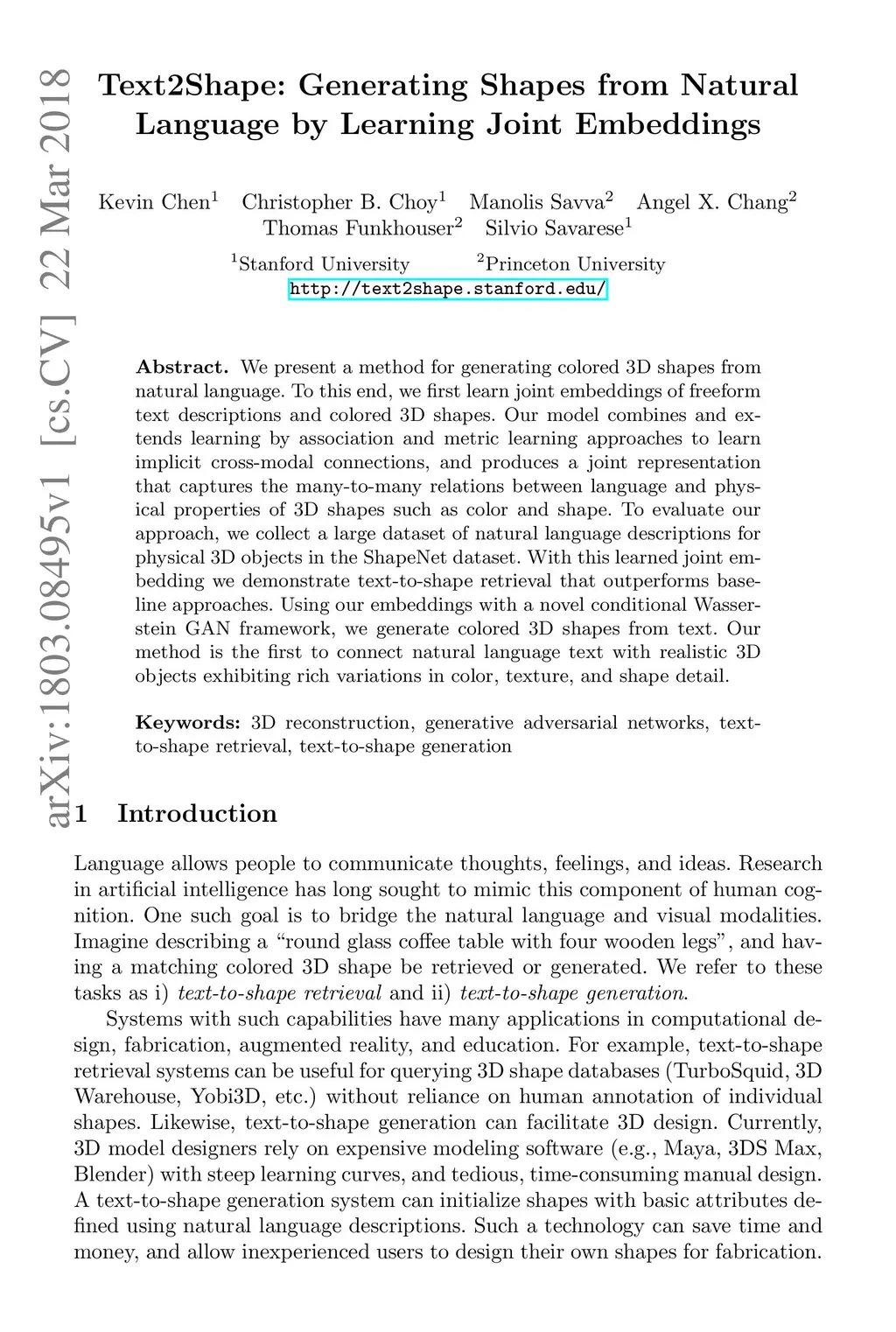 Text2Shape: Generating Shapes from Natural Language by Learning Joint