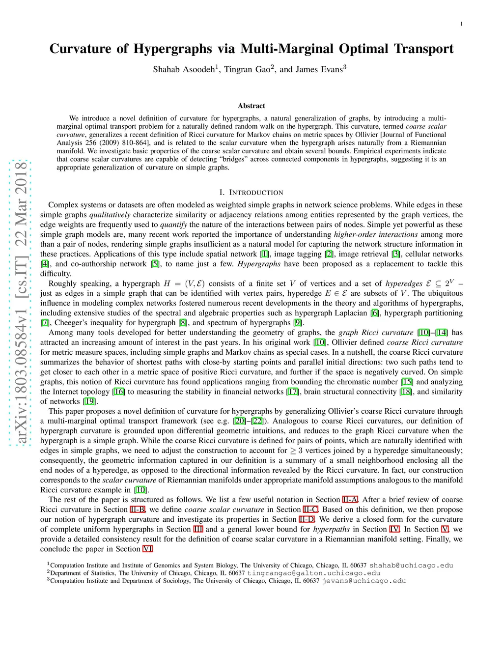 We introduce a novel definition of curvature for hypergraphs, a natural generalization of graphs, by introducing a multi-marginal optimal transport problem for a naturally defined random walk on the hypergraph. This curvature, termed \emph{coarse scalar curvature}, generalizes a recent definition of Ricci curvature for Markov chains on metric spaces by Ollivier [Journal of Functional Analysis 256 (2009) 810-864], and is related to the scalar curvature when the hypergraph arises naturally from a Riemannian manifold. We investigate basic properties of the coarse scalar curvature and obtain several bounds. Empirical experiments indicate that coarse scalar curvatures are capable of detecting "bridges" across connected components in hypergraphs, suggesting it is an appropriate generalization of curvature on simple graphs.