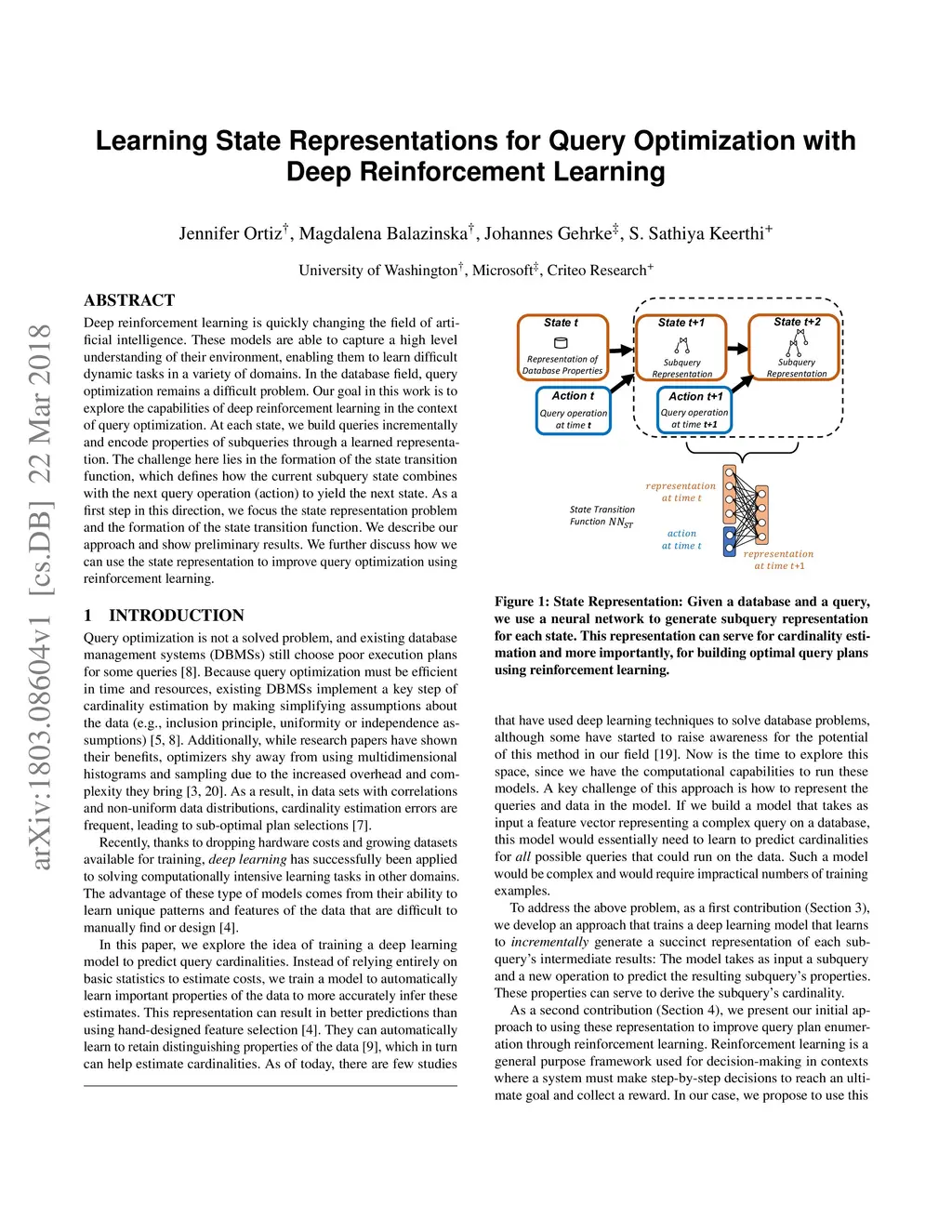 Learning State Representations for Query Optimization with Deep
