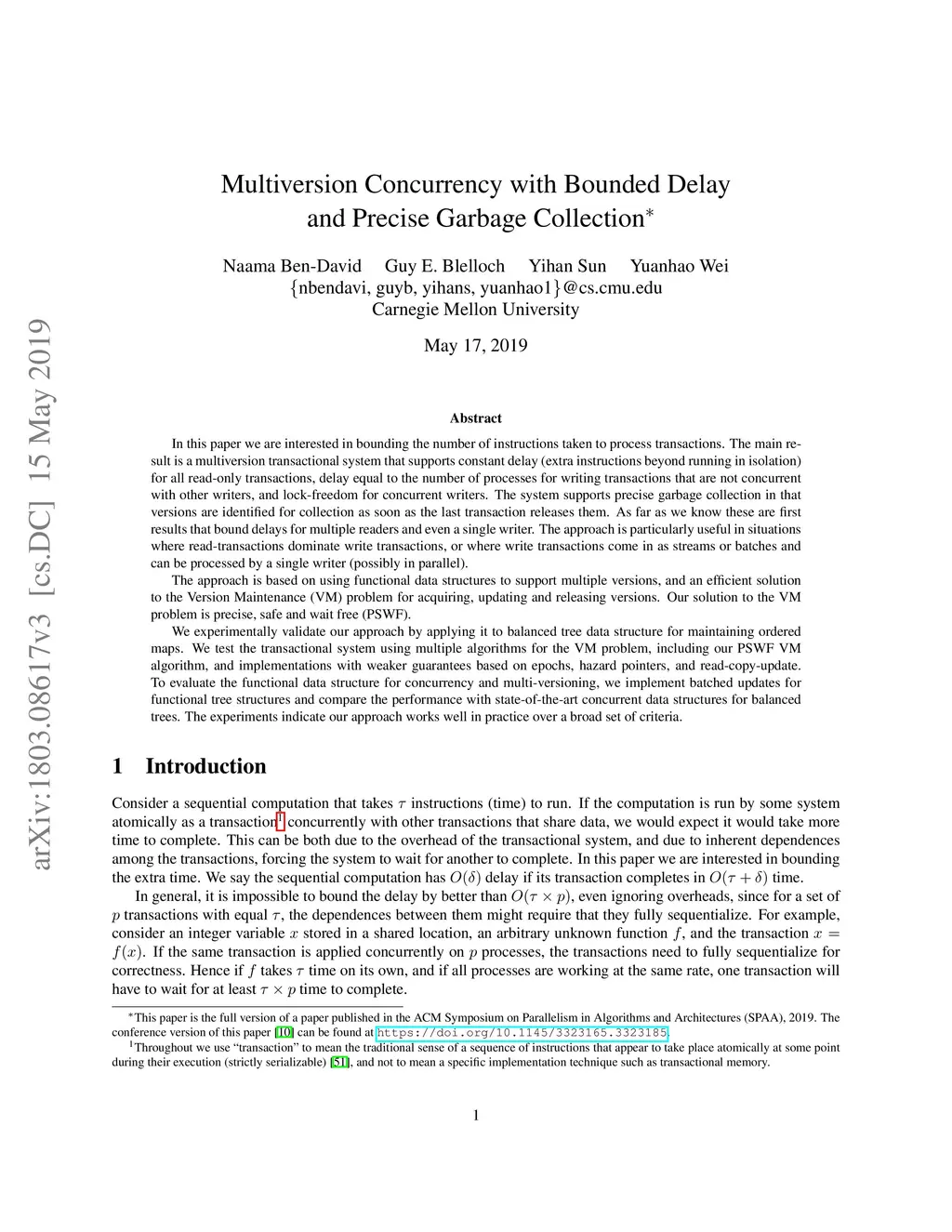 In this paper we are interested in bounding the number of instructions taken to process transactions. The main result is a multiversion transactional system that supports constant delay (extra instructions beyond running in isolation) for all read-only transactions, delay equal to the number of processes for writing transactions that are not concurrent with other writers, and lock-freedom for concurrent writers. The system supports precise garbage collection in that versions are identified for collection as soon as the last transaction releases them. As far as we know these are first results that bound delays for multiple readers and even a single writer. The approach is particularly useful in situations where read-transactions dominate write transactions, or where write transactions come in as streams or batches and can be processed by a single writer (possibly in parallel). The approach is based on using functional data structures to support multiple versions, and an efficient solution to the Version Maintenance (VM) problem for acquiring, updating and releasing versions. Our solution to the VM problem is precise, safe and wait-free (PSWF). We experimentally validate our approach by applying it to balanced tree data structures for maintaining ordered maps. We test the transactional system using multiple algorithms for the VM problem, including our PSWF VM algorithm, and implementations with weaker guarantees based on epochs, hazard pointers, and read-copy-update. To evaluate the functional data structure for concurrency and multi-versioning, we implement batched updates for functional tree structures and compare the performance with state-of-the-art concurrent data structures for balanced trees. The experiments indicate our approach works well in practice over a broad set of criteria.