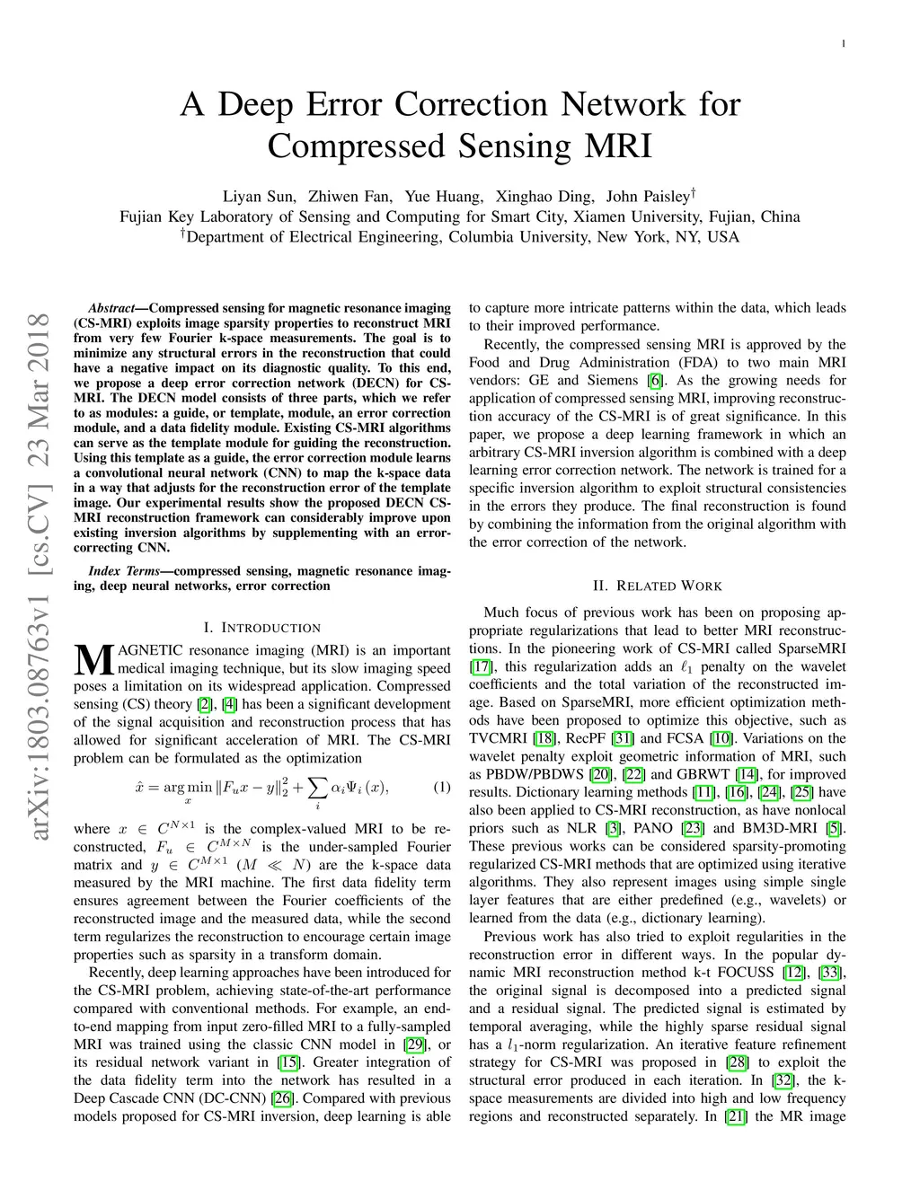 A Deep Error Correction Network for Compressed Sensing MRI