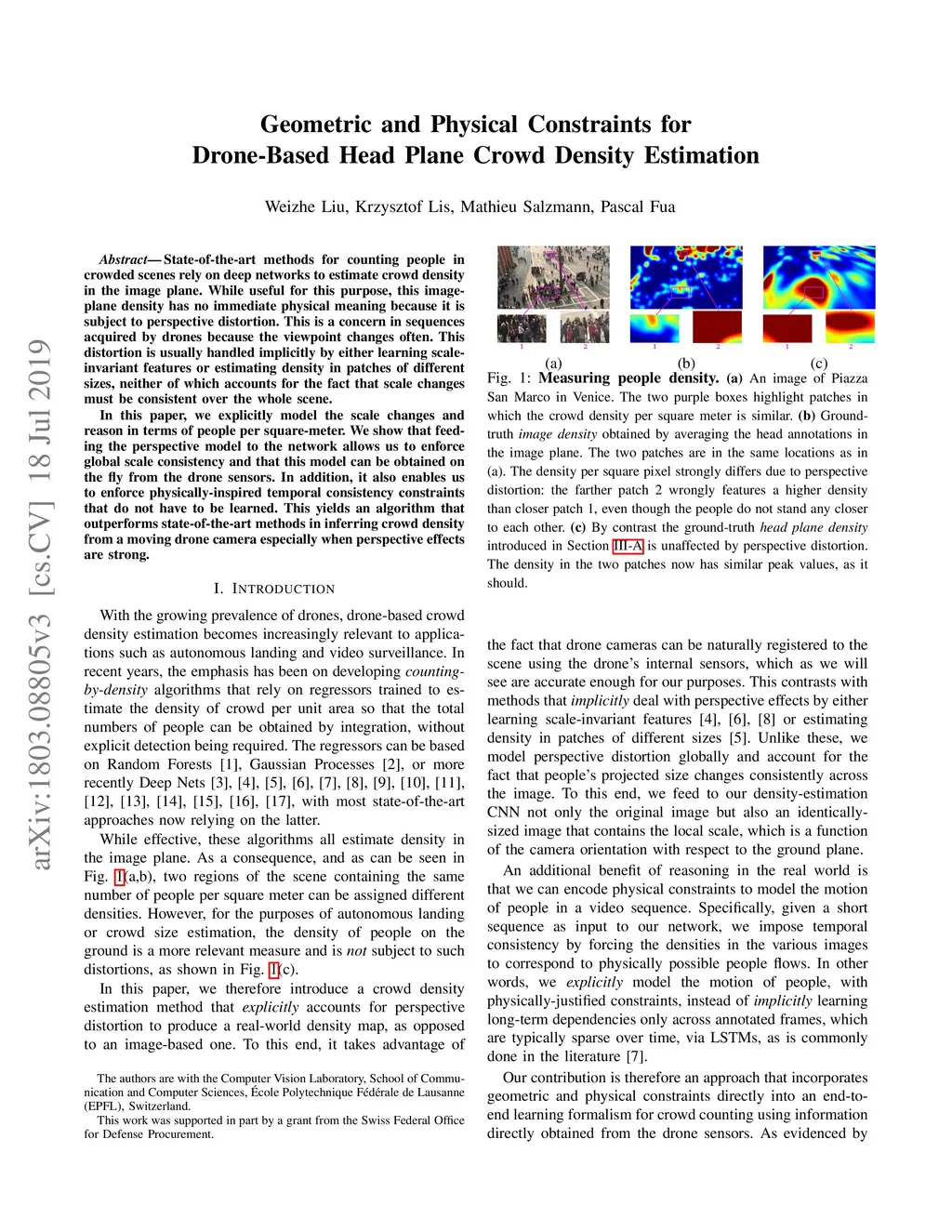 Geometric and Physical Constraints for Drone-Based Head Plane Crowd