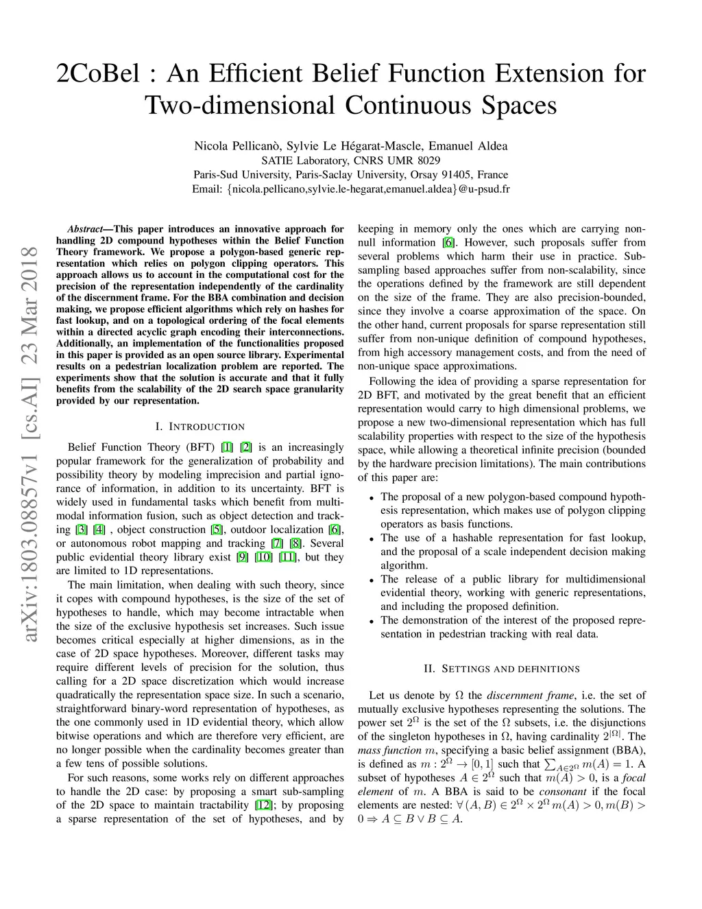 2CoBel : An Efficient Belief Function Extension for Two-dimensional