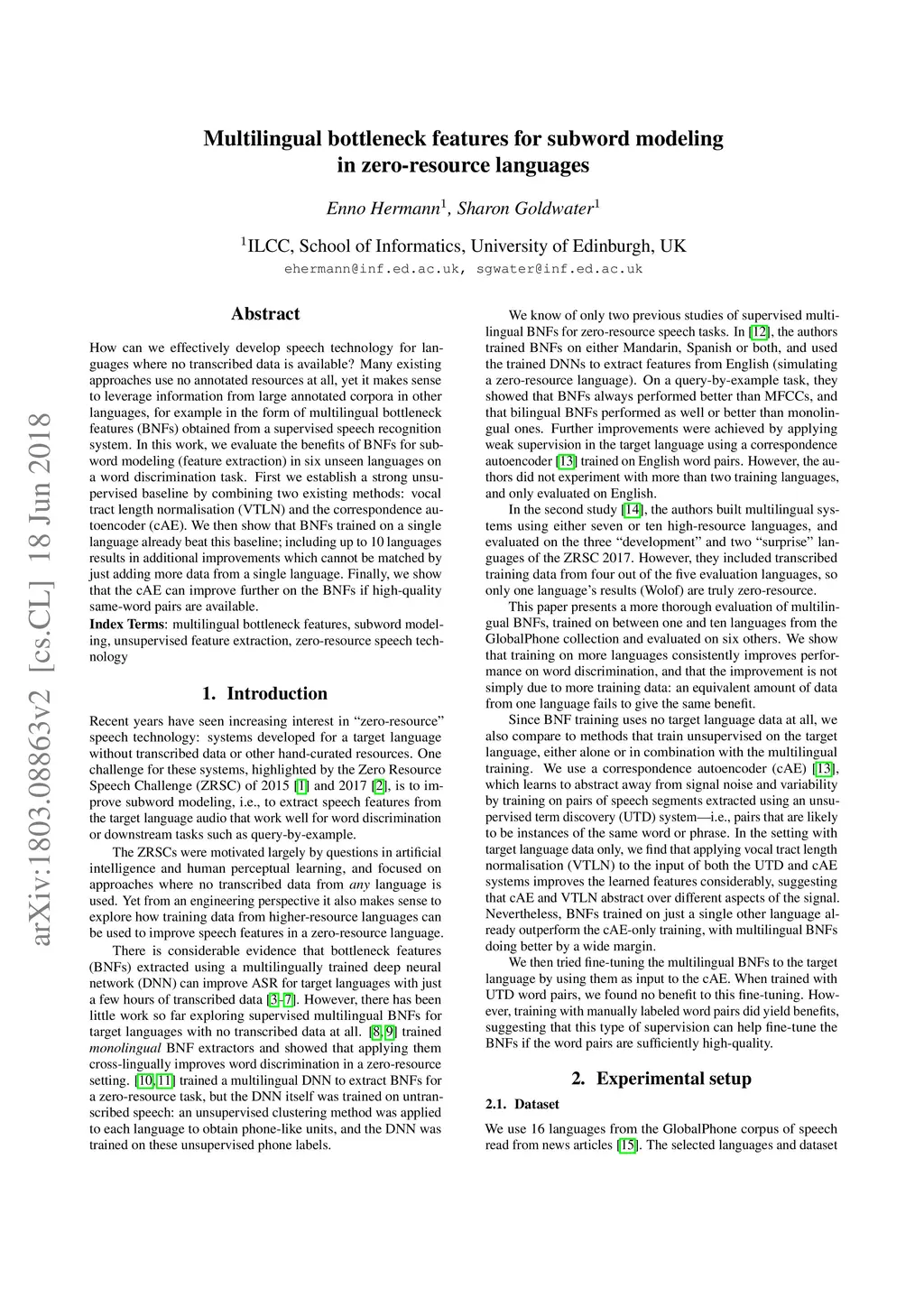 How can we effectively develop speech technology for languages where no transcribed data is available? Many existing approaches use no annotated resources at all, yet it makes sense to leverage information from large annotated corpora in other languages, for example in the form of multilingual bottleneck features (BNFs) obtained from a supervised speech recognition system. In this work, we evaluate the benefits of BNFs for subword modeling (feature extraction) in six unseen languages on a word discrimination task. First we establish a strong unsupervised baseline by combining two existing methods: vocal tract length normalisation (VTLN) and the correspondence autoencoder (cAE). We then show that BNFs trained on a single language already beat this baseline; including up to 10 languages results in additional improvements which cannot be matched by just adding more data from a single language. Finally, we show that the cAE can improve further on the BNFs if high-quality same-word pairs are available.