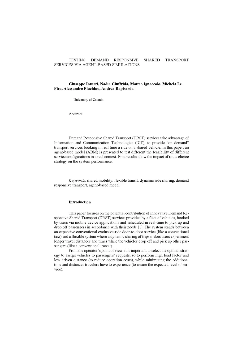 Demand Responsive Shared Transport DRST services take advantage of Information and Communication Technologies ICT, to provide on demand transport services booking in real time a ride on a shared vehicle. In this paper, an agent-based model ABM is presented to test different the feasibility of different service configurations in a real context. First results show the impact of route choice strategy on the system performance.