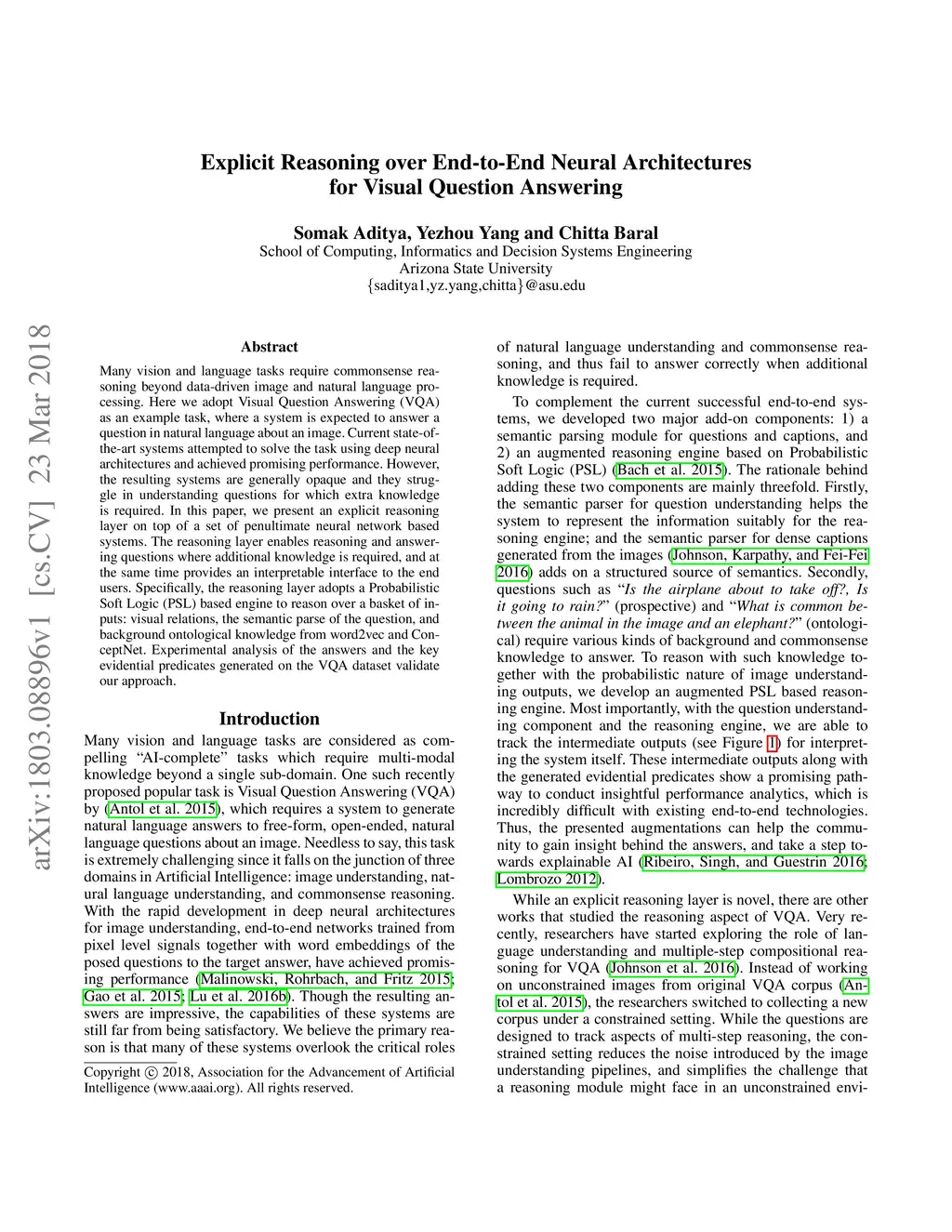 Explicit Reasoning over End-to-End Neural Architectures for Visual