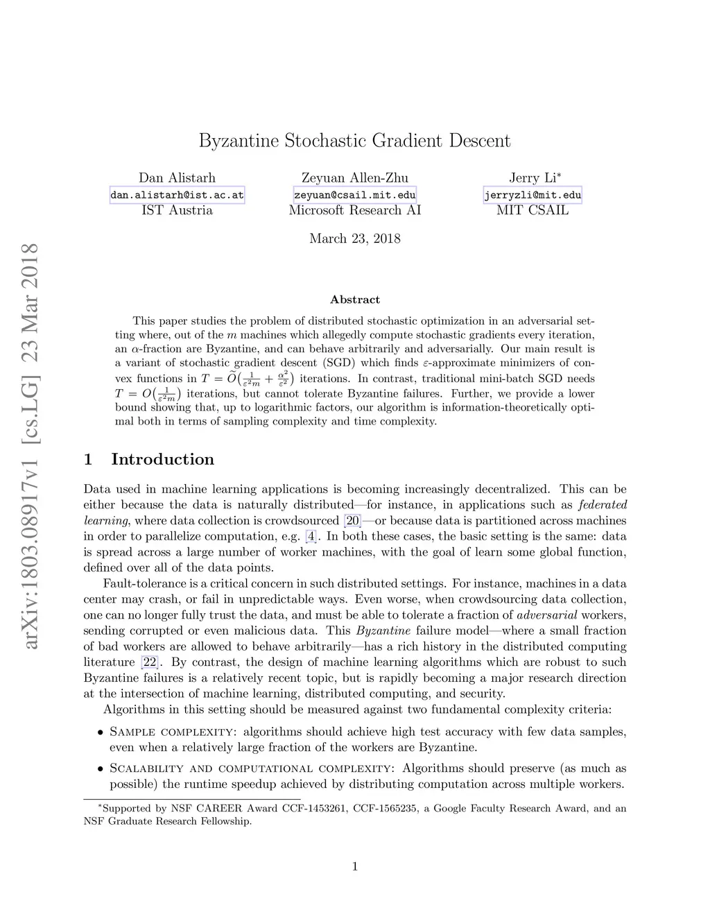 This paper studies the problem of distributed stochastic optimization in an adversarial setting where, out of the machines which allegedly compute stochastic gradients every iteration, an -fraction are Byzantine, and can behave arbitrarily and adversarially. Our main result is a variant of stochastic gradient descent (SGD) which finds -approximate minimizers of convex functions in iterations. In contrast, traditional mini-batch SGD needs iterations, but cannot tolerate Byzantine failures. Further, we provide a lower bound showing that, up to logarithmic factors, our algorithm is information-theoretically optimal both in terms of sampling complexity and time complexity.