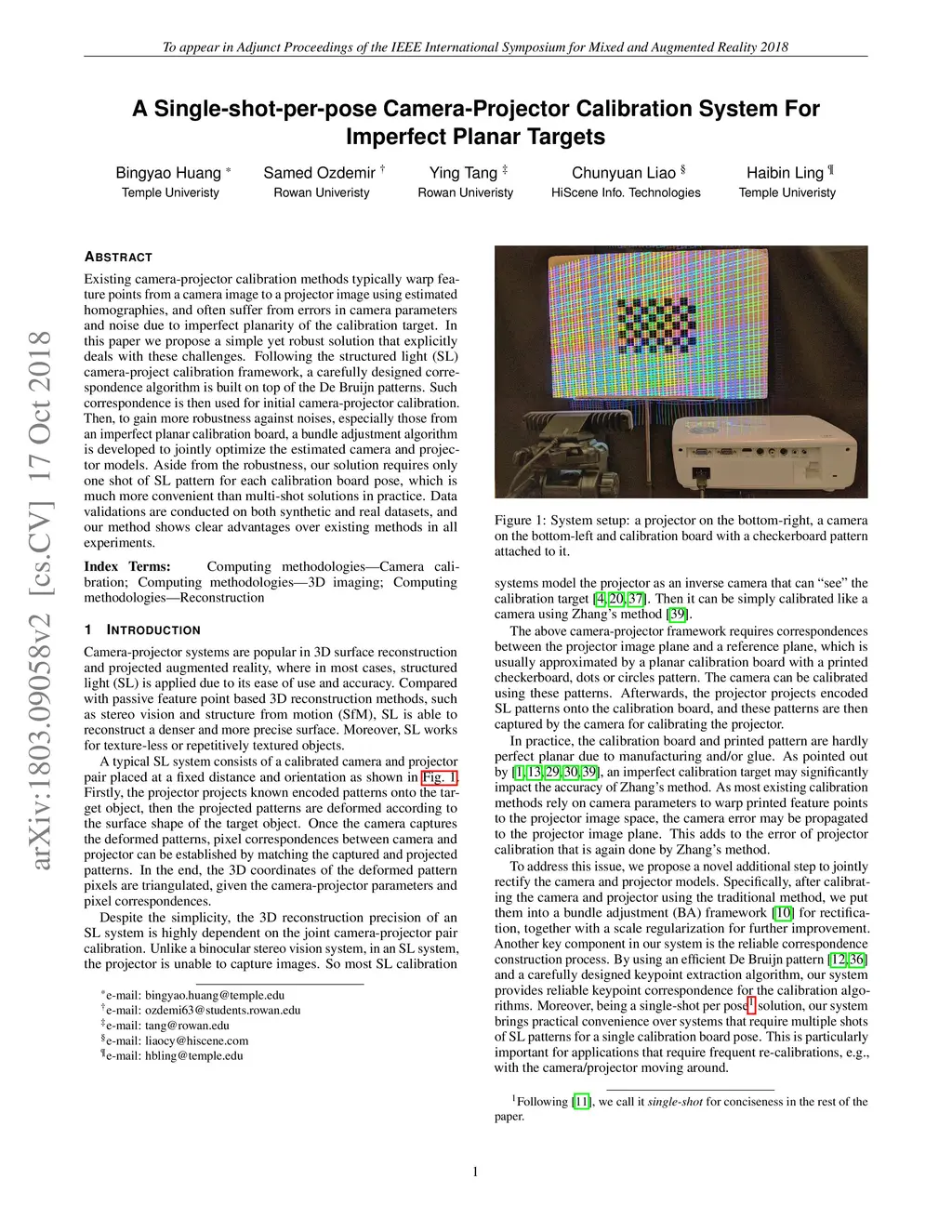 A Single-shot-per-pose Camera-Projector Calibration System For Imperfect
