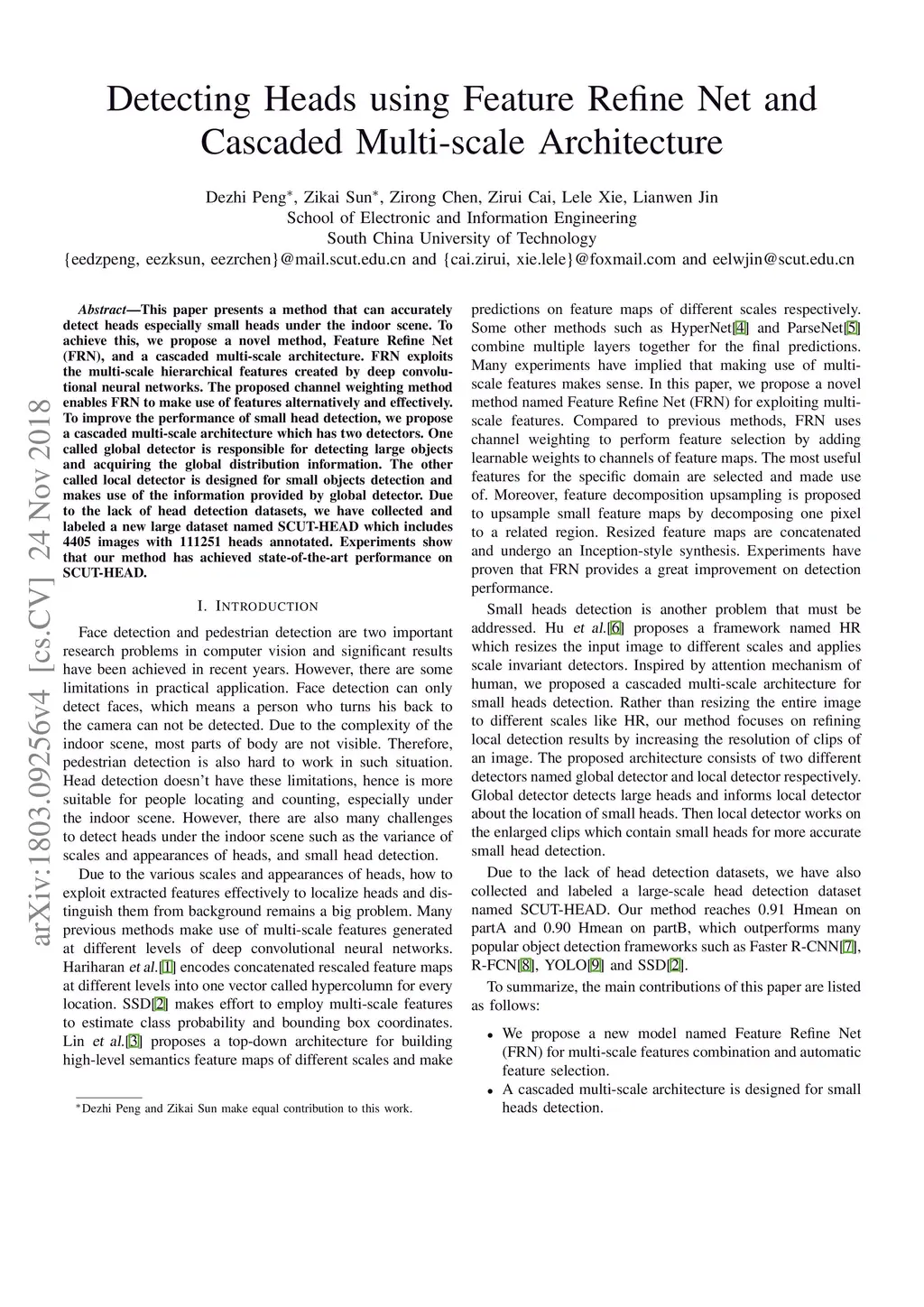 Detecting Heads using Feature Refine Net and Cascaded Multi-Scale