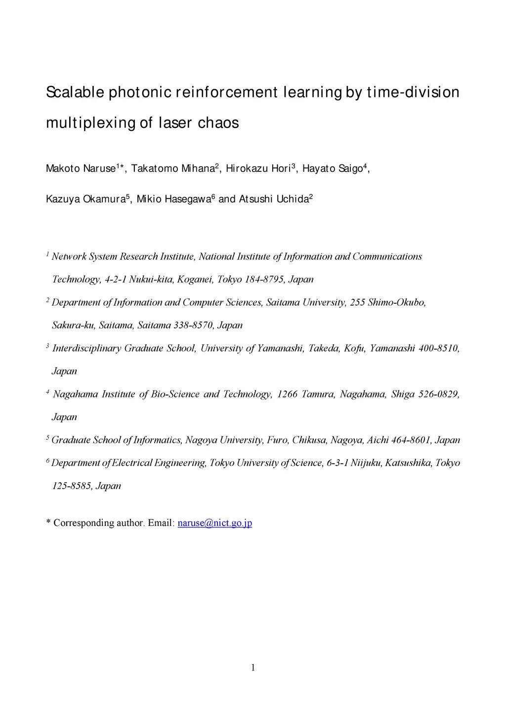 Scalable photonic reinforcement learning by time-division multiplexing