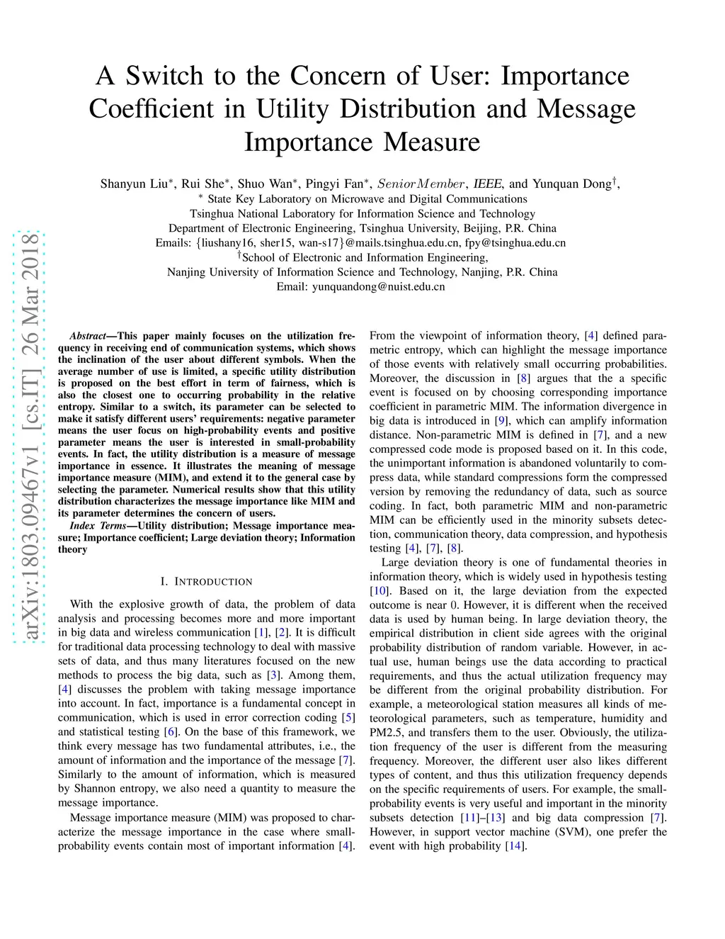 A Switch to the Concern of User: Importance Coefficient in Utility