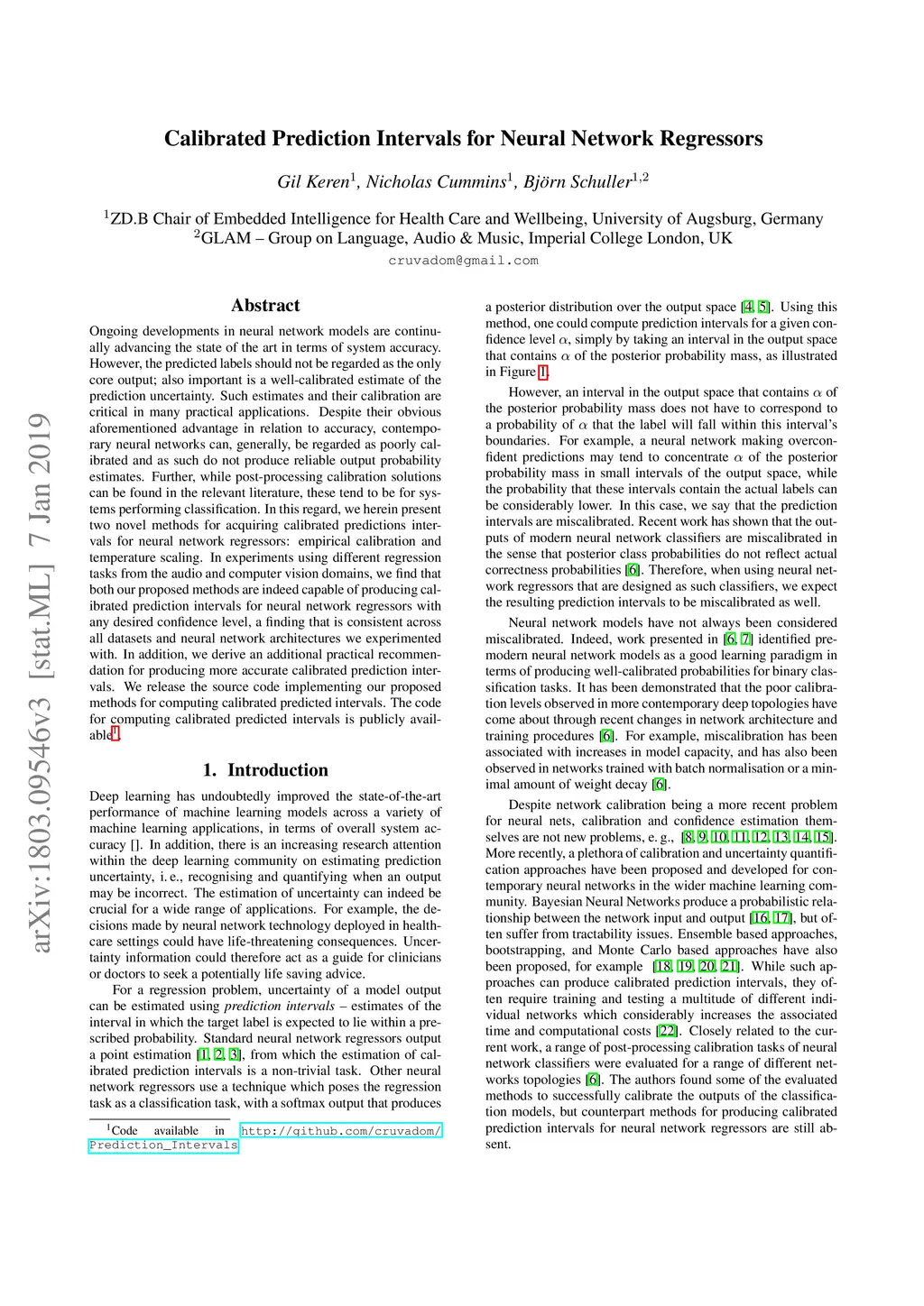 Calibrated Prediction Intervals for Neural Network Regressors
