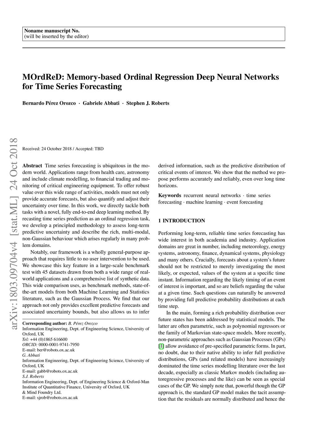 MOrdReD: Memory-based Ordinal Regression Deep Neural Networks for Time