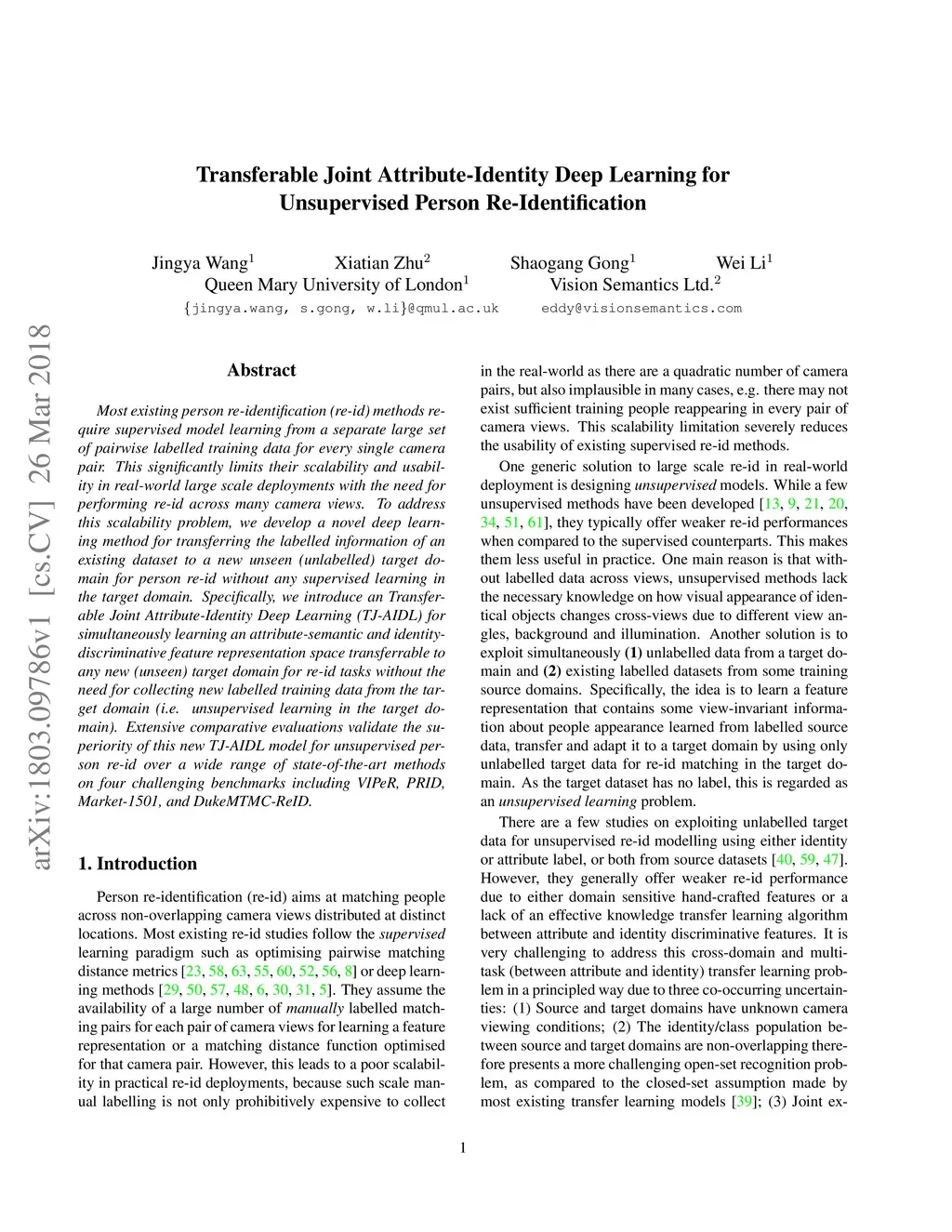 Transferable Joint Attribute-Identity Deep Learning for Unsupervised