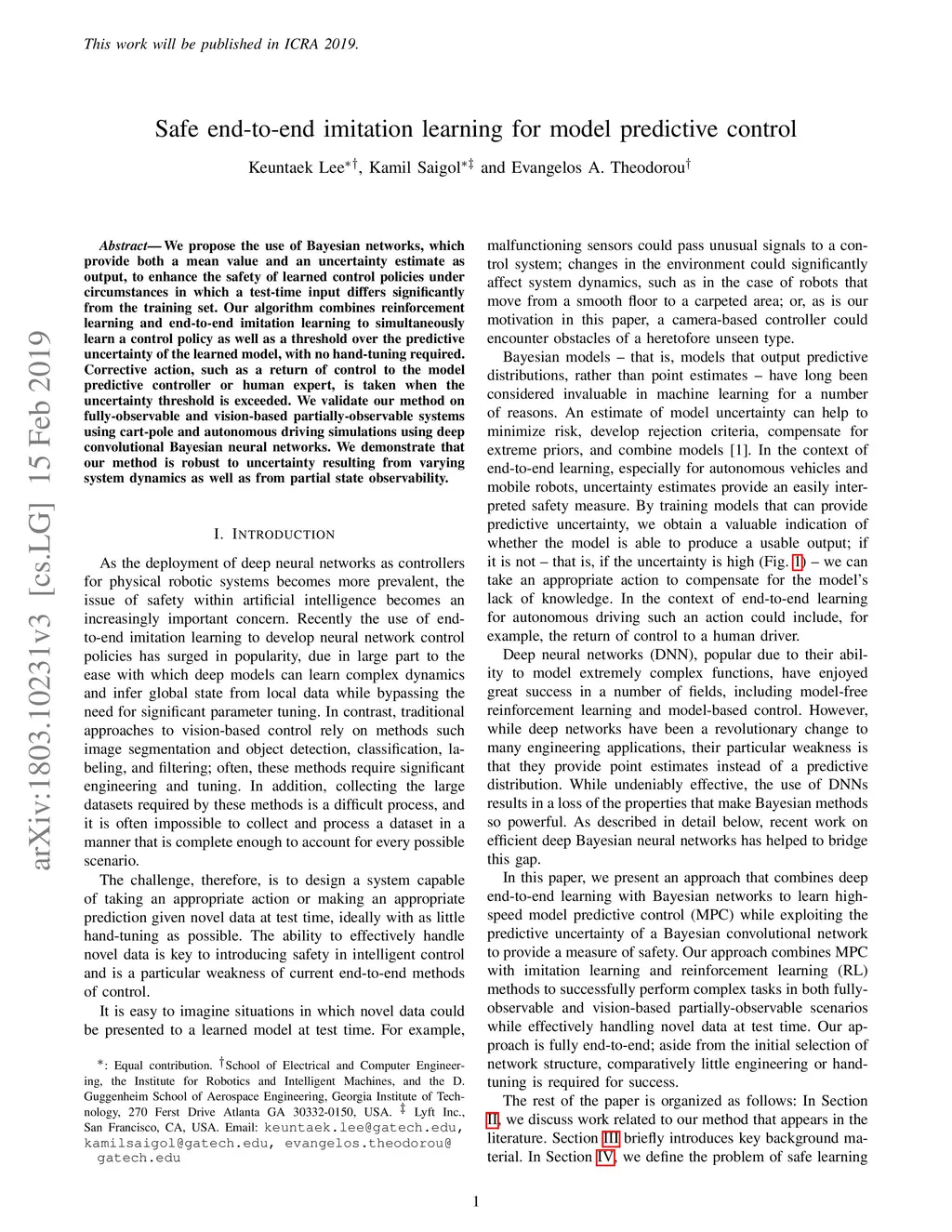 Safe end-to-end imitation learning for model predictive control