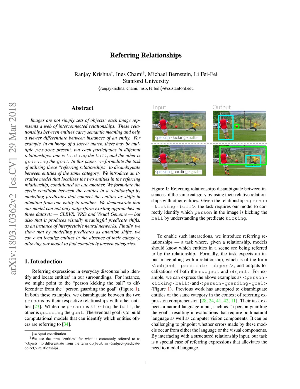 Images are not simply sets of objects: each image represents a web of interconnected relationships. These relationships between entities carry semantic meaning and help a viewer differentiate between instances of an entity. For example, in an image of a soccer match, there may be multiple persons present, but each participates in different relationships: one is kicking the ball, and the other is guarding the goal. In this paper, we formulate the task of utilizing these "referring relationships" to disambiguate between entities of the same category. We introduce an iterative model that localizes the two entities in the referring relationship, conditioned on one another. We formulate the cyclic condition between the entities in a relationship by modelling predicates that connect the entities as shifts in attention from one entity to another. We demonstrate that our model can not only outperform existing approaches on three datasets --- CLEVR, VRD and Visual Genome --- but also that it produces visually meaningful predicate shifts, as an instance of interpretable neural networks. Finally, we show that by modelling predicates as attention shifts, we can even localize entities in the absence of their category, allowing our model to find completely unseen categories.
