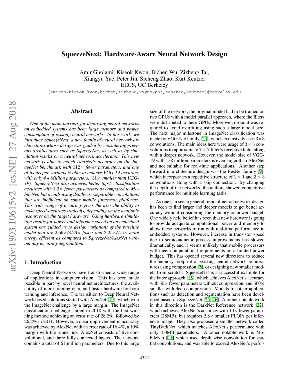 SqueezeNext: Hardware-Aware Neural Network Design