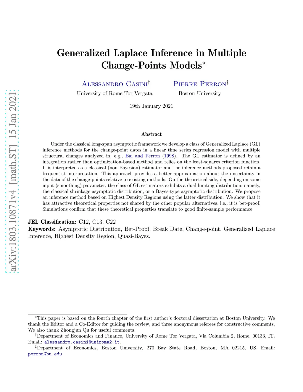 Generalized Laplace Inference in Multiple Change-Points Models