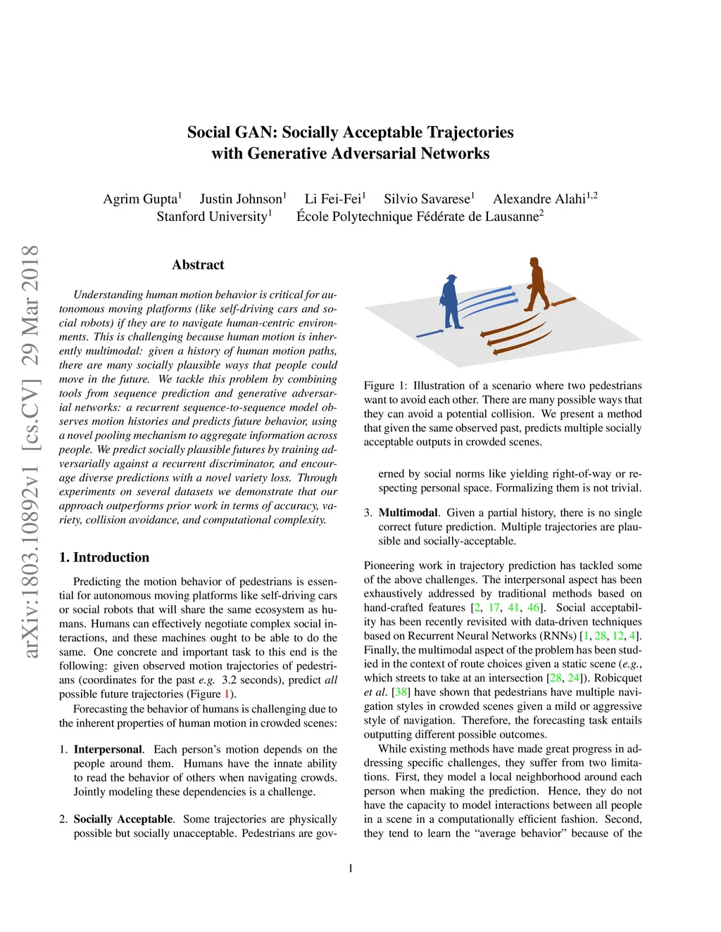 Social GAN: Socially Acceptable Trajectories with Generative Adversarial