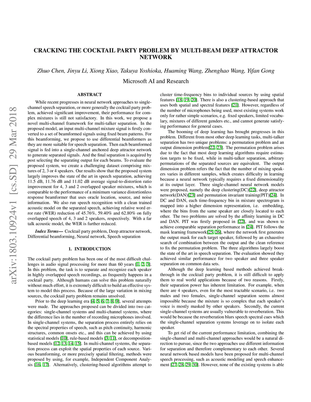 Cracking the cocktail party problem by multi-beam deep attractor network