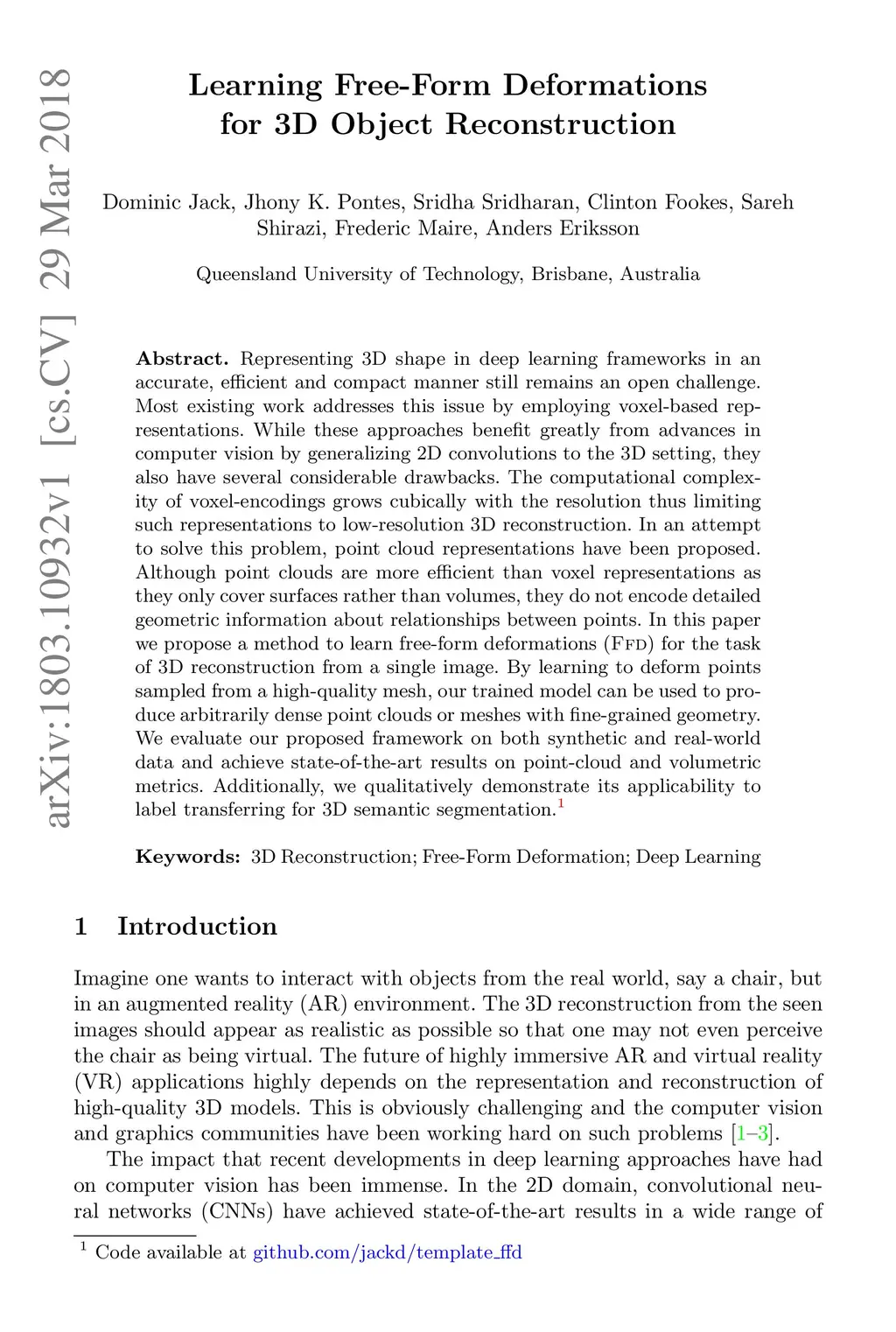 Learning Free-Form Deformations for 3D Object Reconstruction