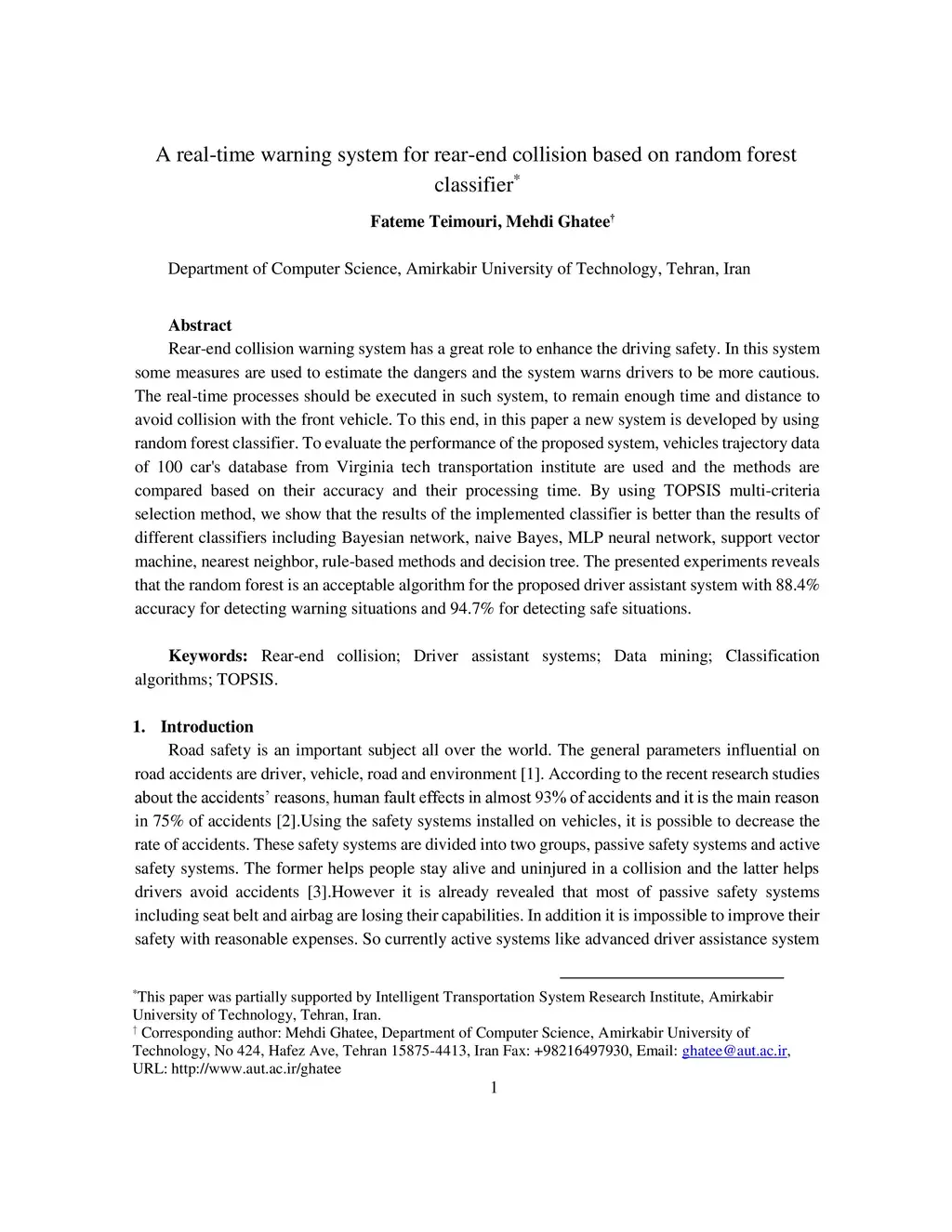 A real-time warning system for rear-end collision based on random forest