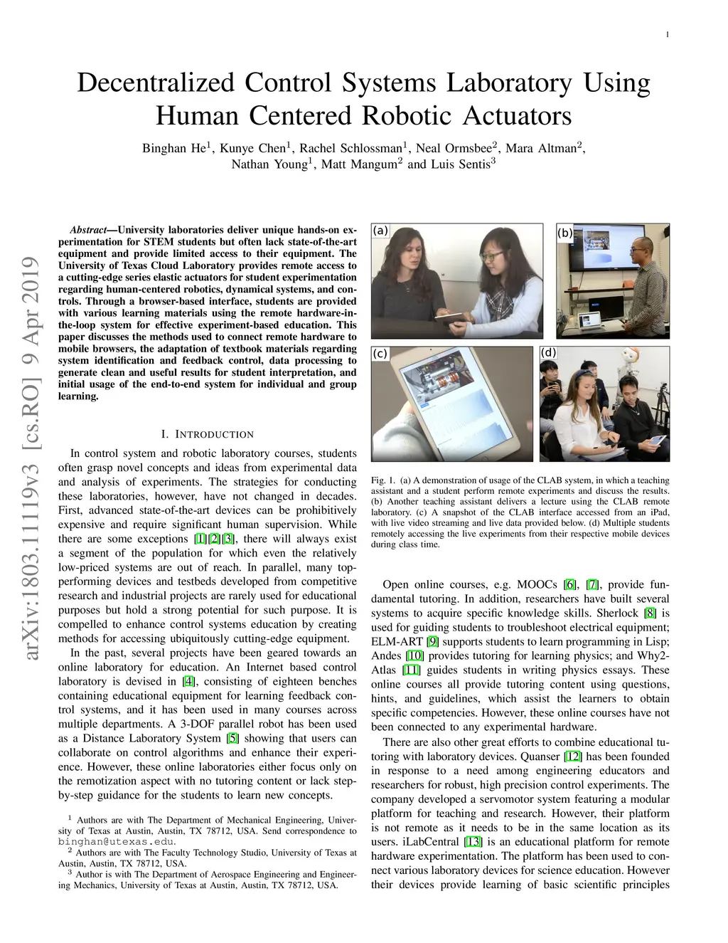 Decentralized Control Systems Laboratory Using Human Centered Robotic