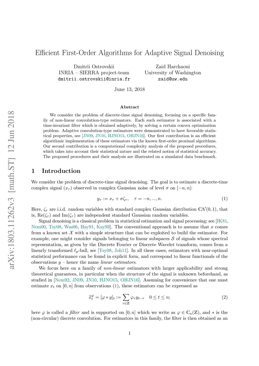 We consider the problem of discrete-time signal denoising, focusing on a specific family of non-linear convolution-type estimators. Each such estimator is associated with a time-invariant filter which is obtained adaptively, by solving a certain convex optimization problem. Adaptive convolution-type estimators were demonstrated to have favorable statistical properties. However, the question of their computational complexity remains largely unexplored, and in fact we are not aware of any publicly available implementation of these estimators. Our first contribution is an efficient implementation of these estimators via some known first-order proximal algorithms. Our second contribution is a computational complexity analysis of the proposed procedures, which takes into account their statistical nature and the related notion of statistical accuracy. The proposed procedures and their analysis are illustrated on a simulated data benchmark.
