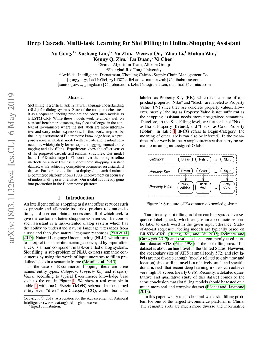 Deep Cascade Multi-task Learning for Slot Filling in Online Shopping