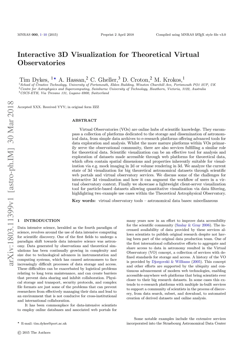 Interactive 3D Visualization for Theoretical Virtual Observatories