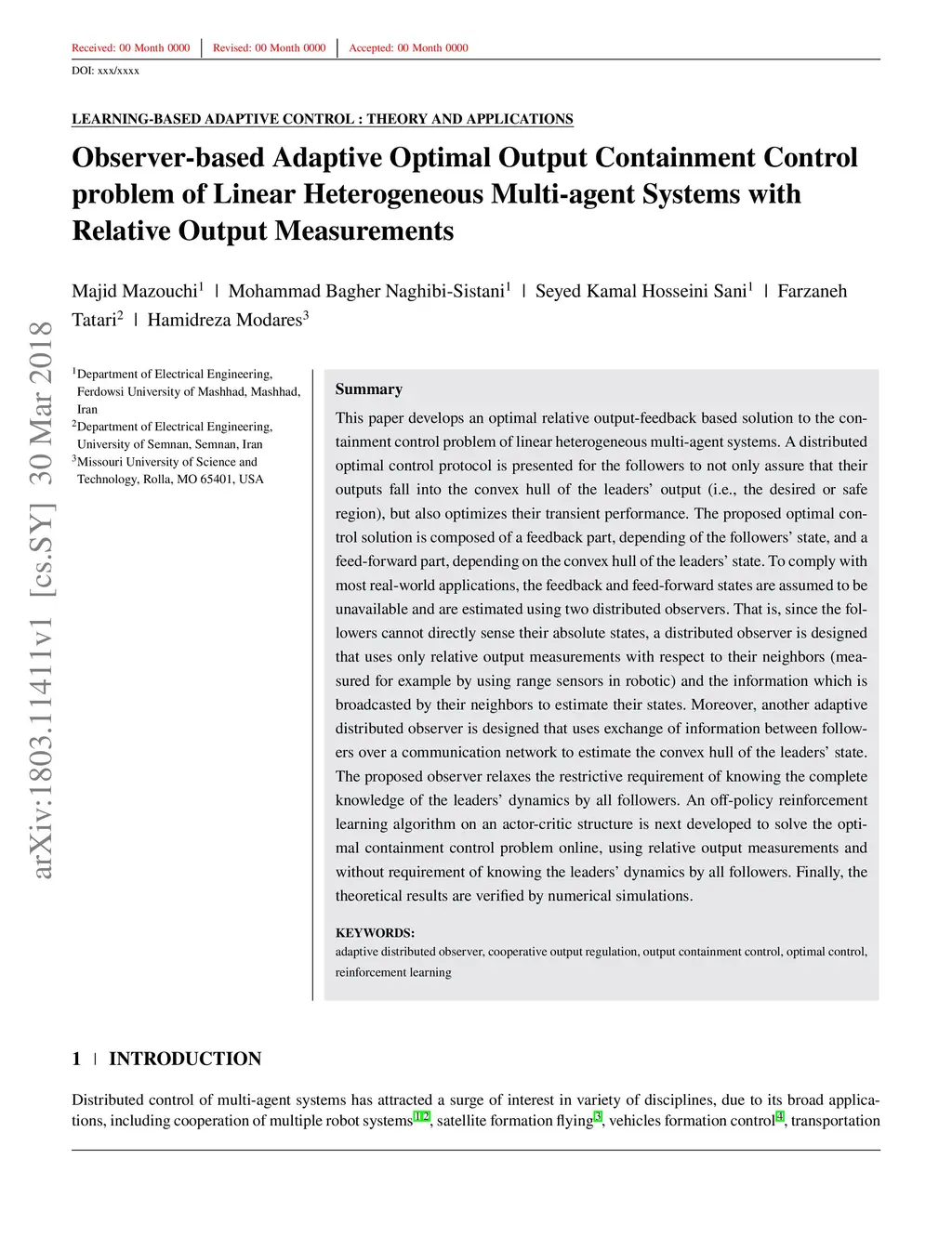 Observer-based Adaptive Optimal Output Containment Control problem of