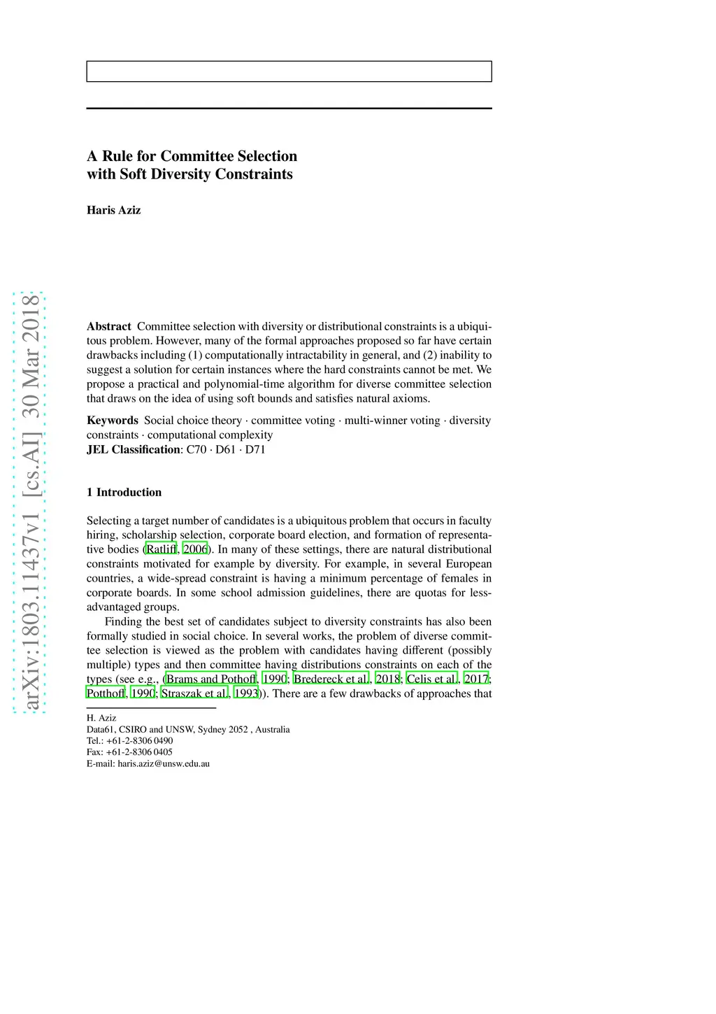 A Rule for Committee Selection with Soft Diversity Constraints