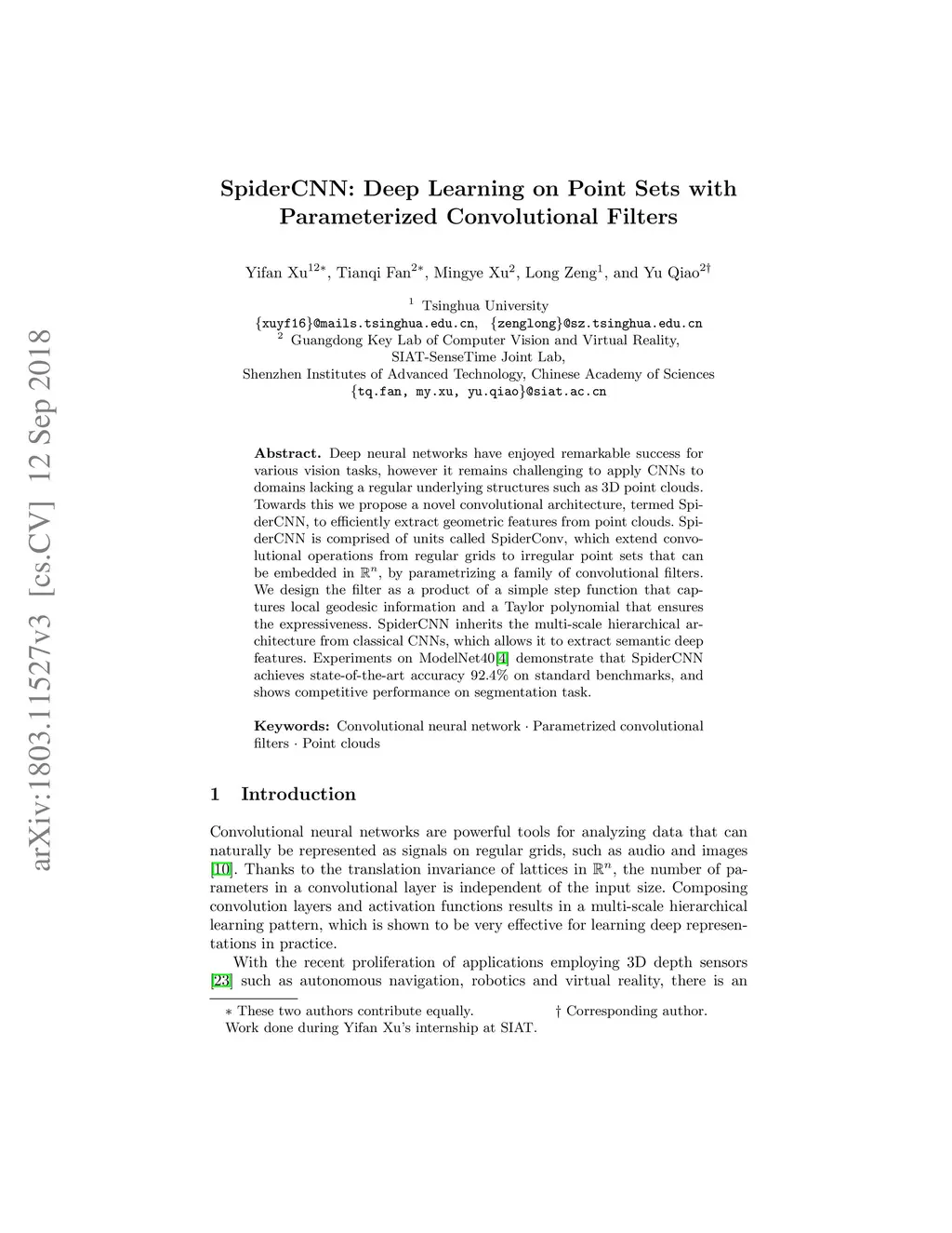 SpiderCNN: Deep Learning on Point Sets with Parameterized Convolutional