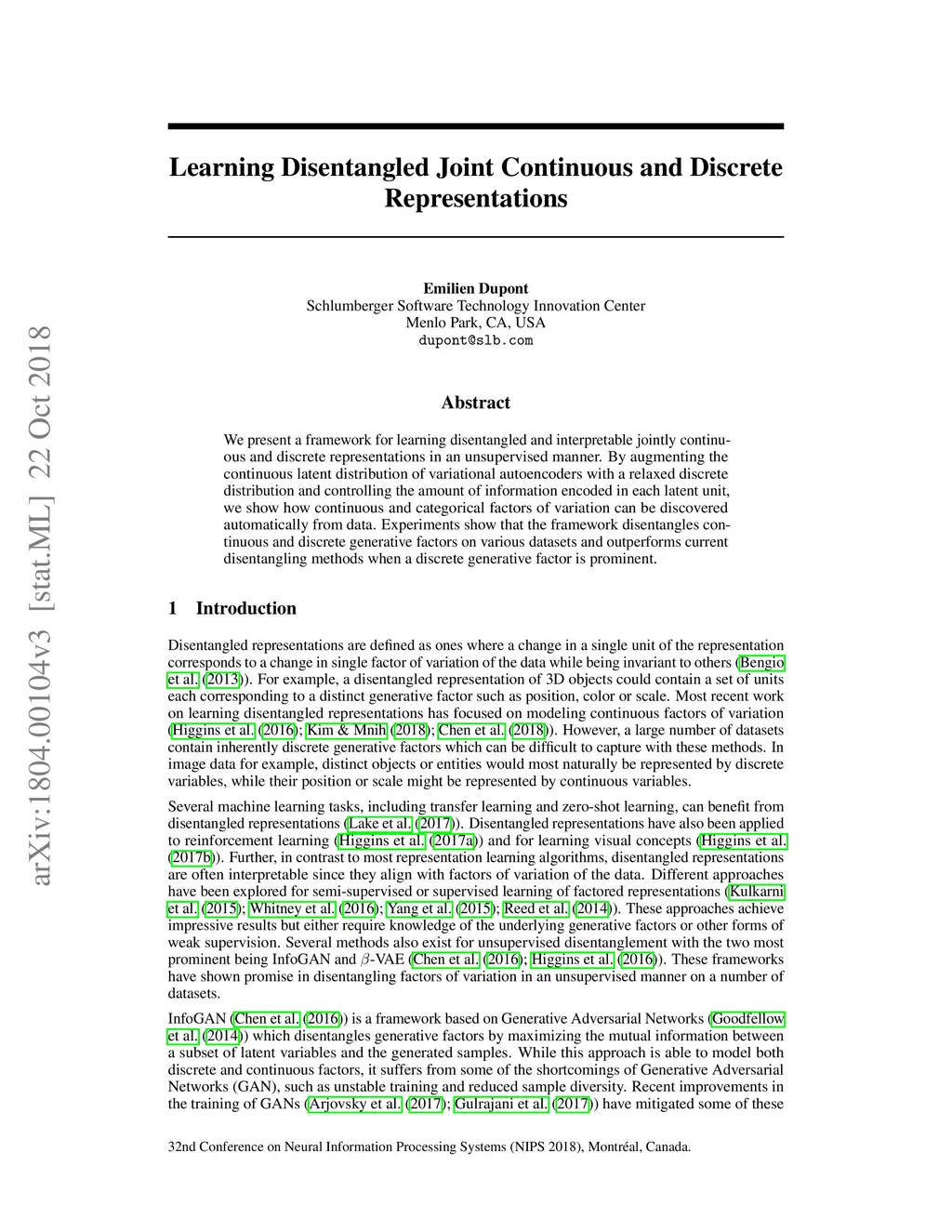 We present a framework for learning disentangled and interpretable jointly continuous and discrete representations in an unsupervised manner. By augmenting the continuous latent distribution of variational autoencoders with a relaxed discrete distribution and controlling the amount of information encoded in each latent unit, we show how continuous and categorical factors of variation can be discovered automatically from data. Experiments show that the framework disentangles continuous and discrete generative factors on various datasets and outperforms current disentangling methods when a discrete generative factor is prominent.
