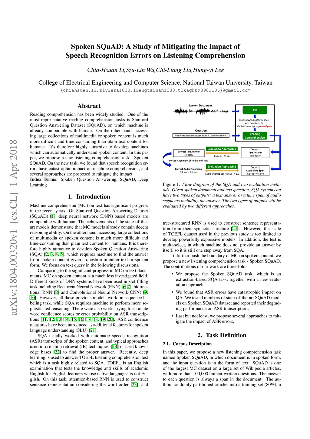 Spoken SQuAD: A Study of Mitigating the Impact of Speech Recognition