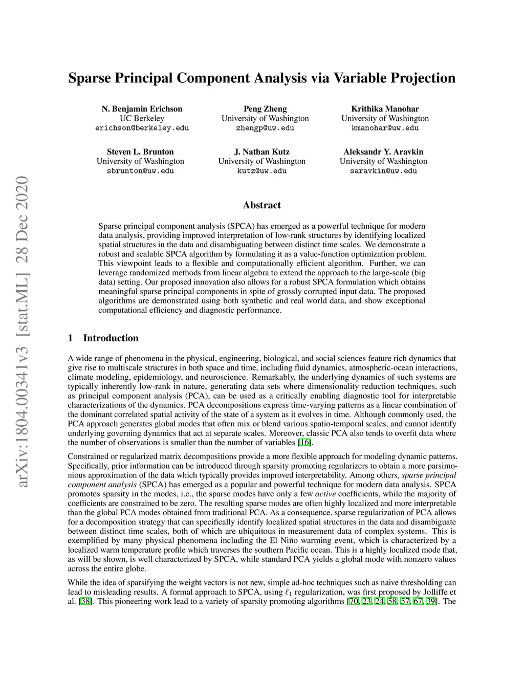 Sparse Principal Component Analysis via Variable Projection