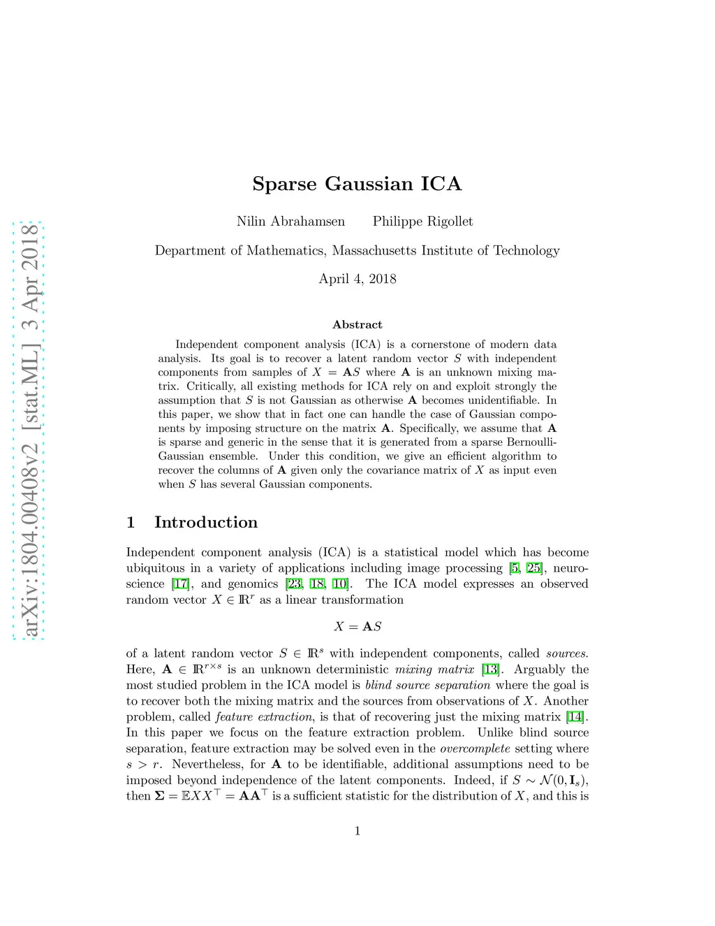 Independent component analysis (ICA) is a cornerstone of modern data analysis. Its goal is to recover a latent random vector S with independent components from samples of X=AS where A is an unknown mixing matrix. Critically, all existing methods for ICA rely on and exploit strongly the assumption that S is not Gaussian as otherwise A becomes unidentifiable. In this paper, we show that in fact one can handle the case of Gaussian components by imposing structure on the matrix A. Specifically, we assume that A is sparse and generic in the sense that it is generated from a sparse Bernoulli-Gaussian ensemble. Under this condition, we give an efficient algorithm to recover the columns of A given only the covariance matrix of X as input even when S has several Gaussian components.