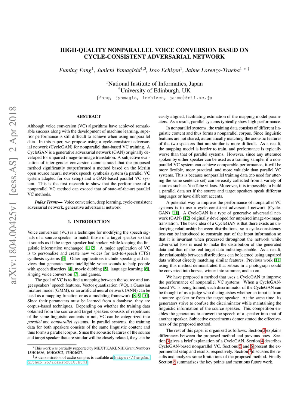 High-quality nonparallel voice conversion based on cycle-consistent