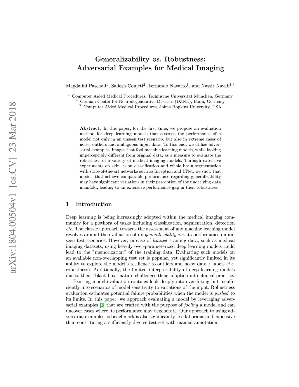 Generalizability vs. Robustness: Adversarial Examples for Medical