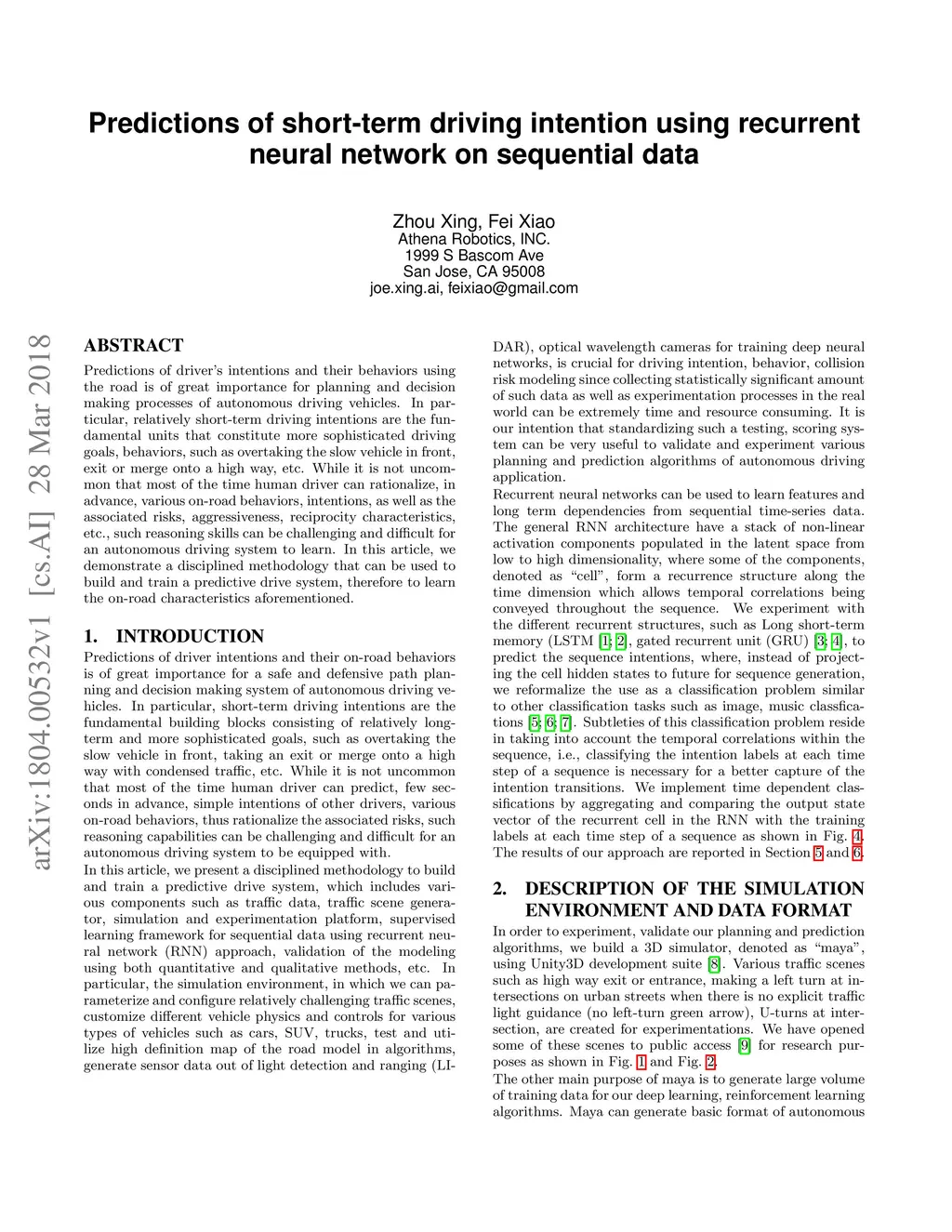 Predictions of short-term driving intention using recurrent neural