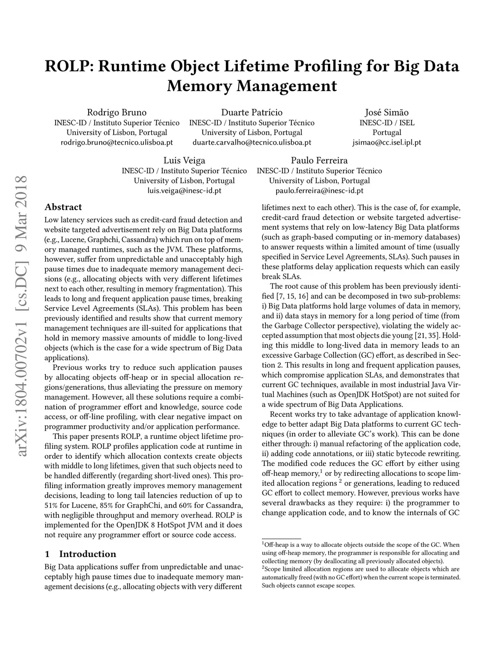 ROLP: Runtime Object Lifetime Profiling for Big Data Memory Management