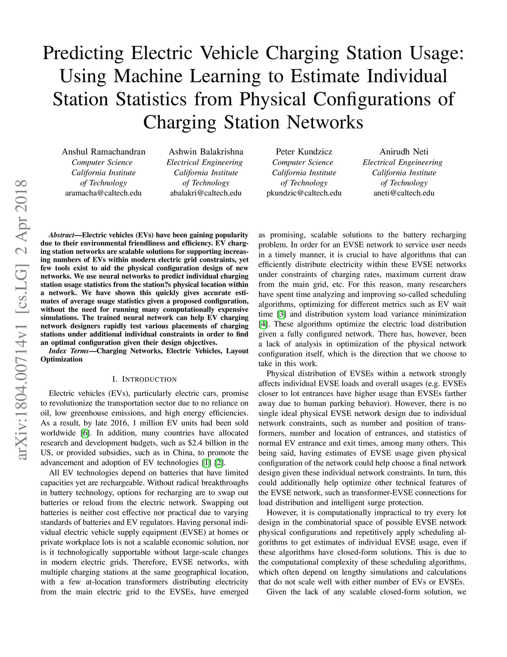 Electric vehicles (EVs) have been gaining popularity due to their environmental friendliness and efficiency. EV charging station networks are scalable solutions for supporting increasing numbers of EVs within modern electric grid constraints, yet few tools exist to aid the physical configuration design of new networks. We use neural networks to predict individual charging station usage statistics from the station's physical location within a network. We have shown this quickly gives accurate estimates of average usage statistics given a proposed configuration, without the need for running many computationally expensive simulations. The trained neural network can help EV charging network designers rapidly test various placements of charging stations under additional individual constraints in order to find an optimal configuration given their design objectives.
