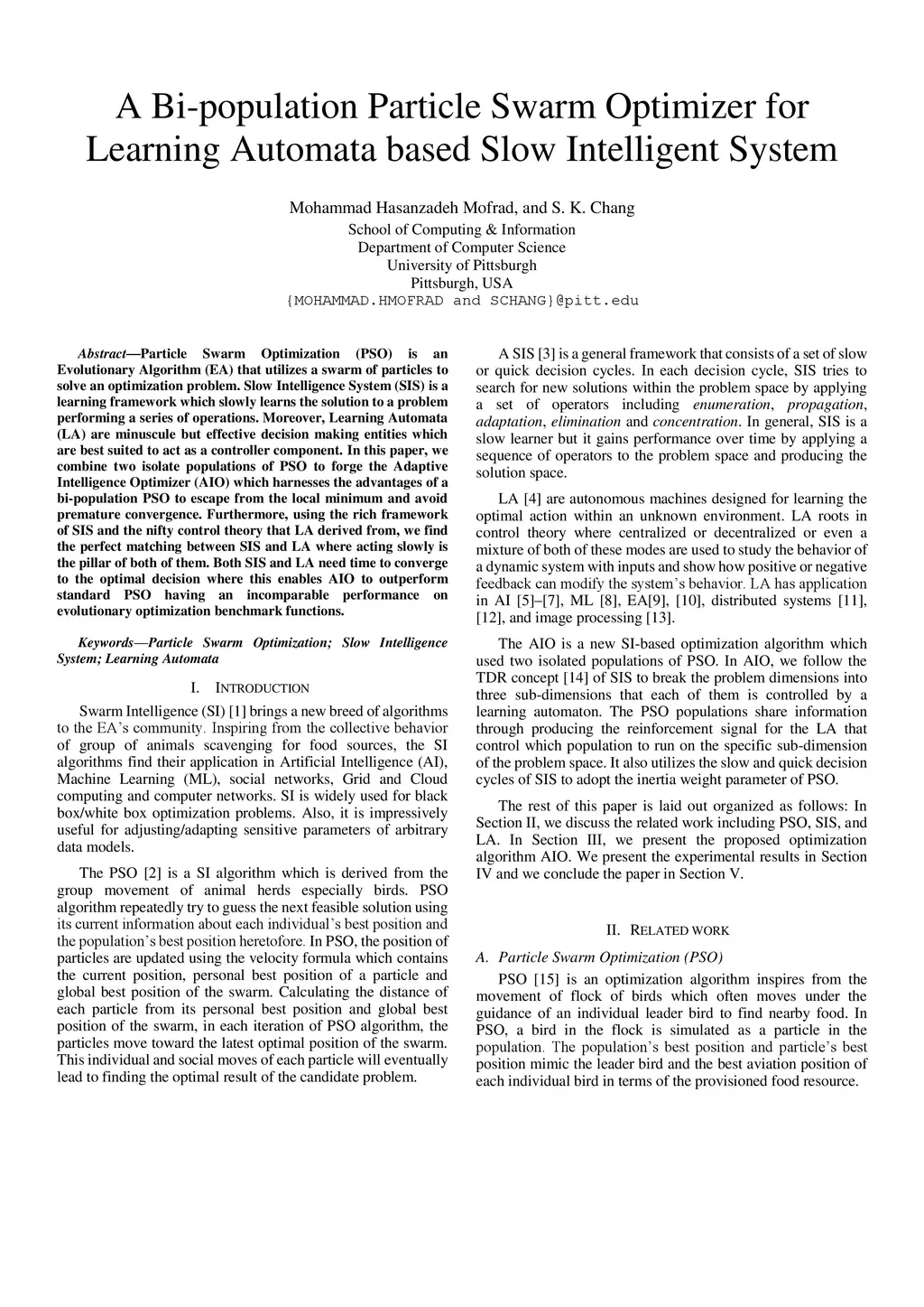 A Bi-population Particle Swarm Optimizer for Learning Automata based