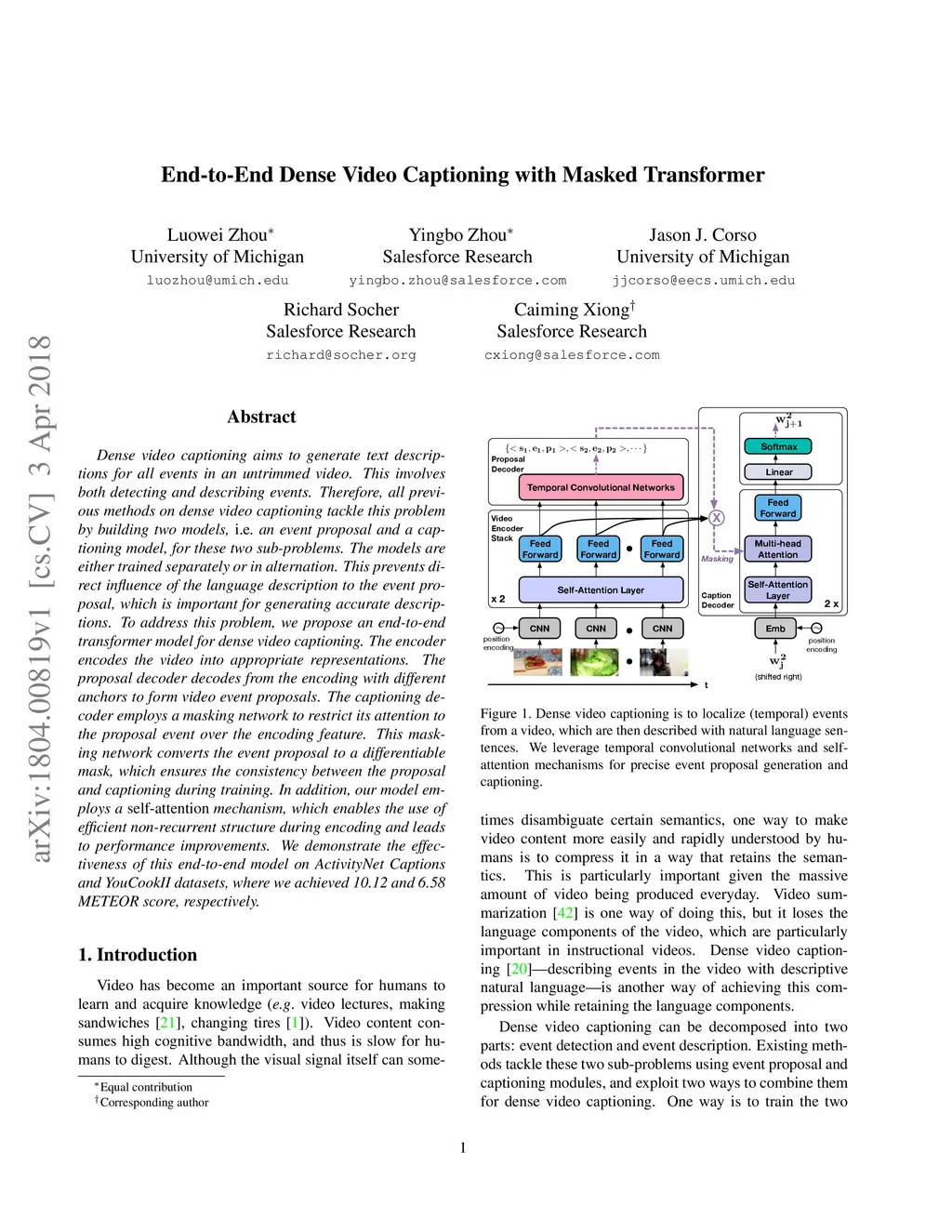 End-to-End Dense Video Captioning with Masked Transformer