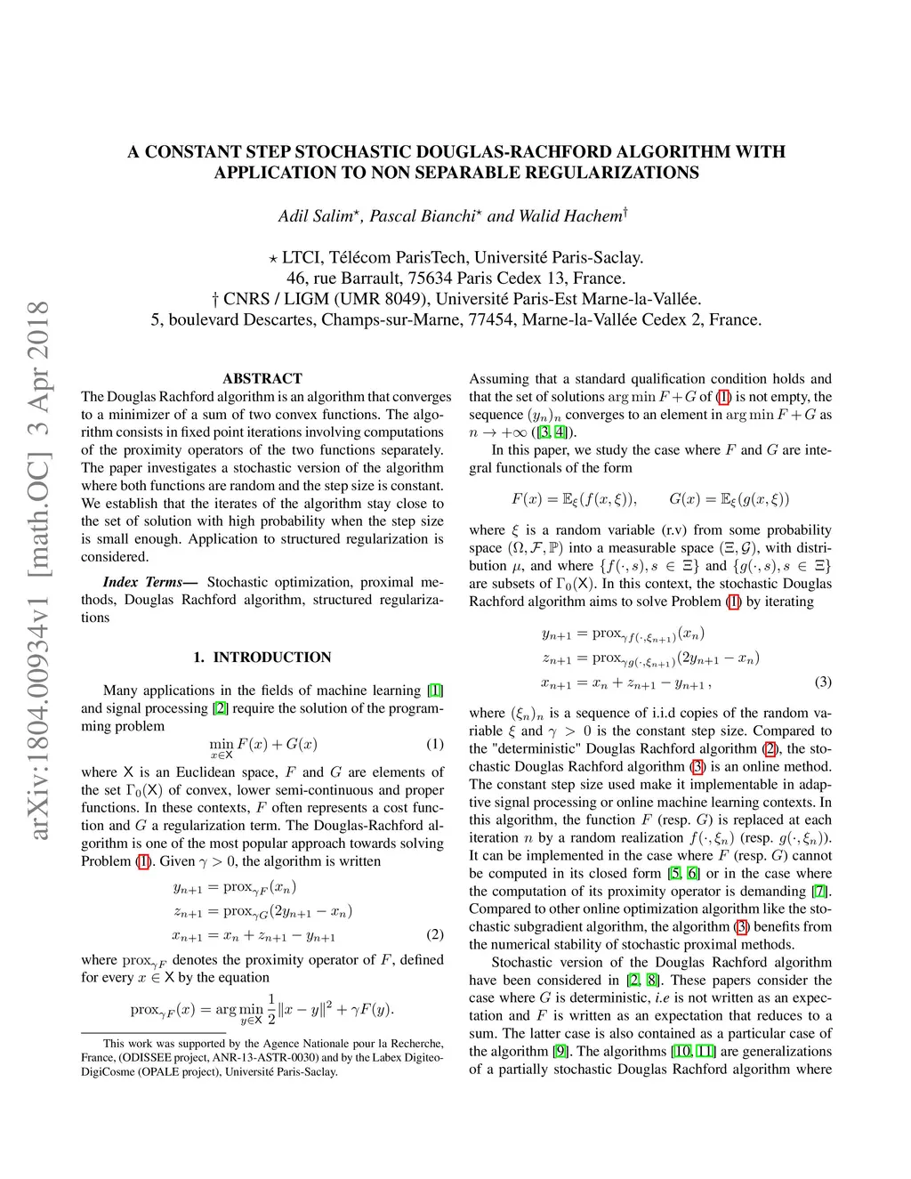 A Constant Step Stochastic Douglas-Rachford Algorithm with Application