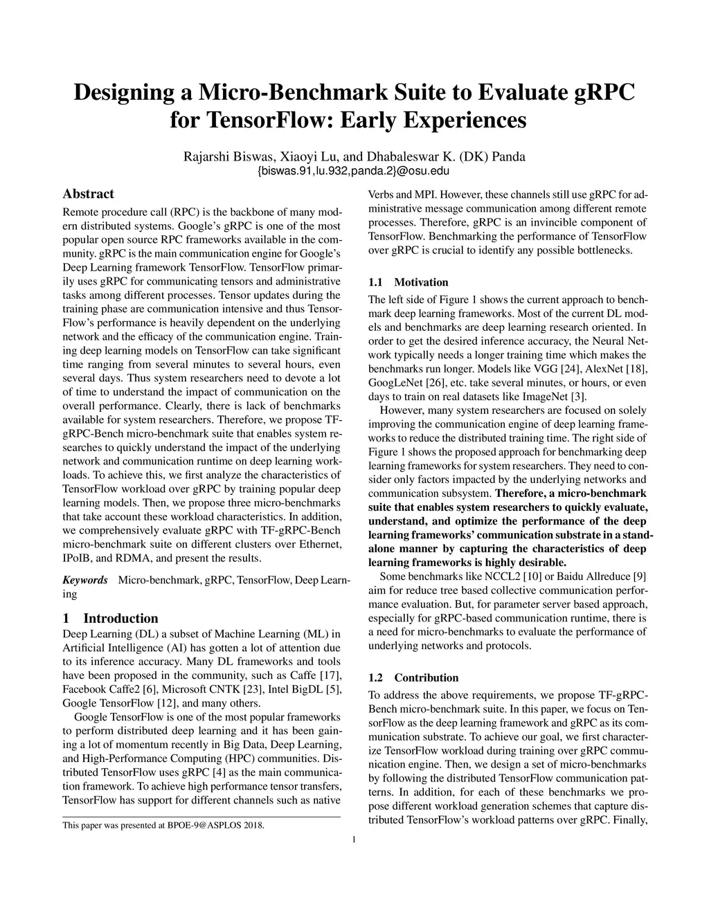 Designing a Micro-Benchmark Suite to Evaluate gRPC for TensorFlow: Early