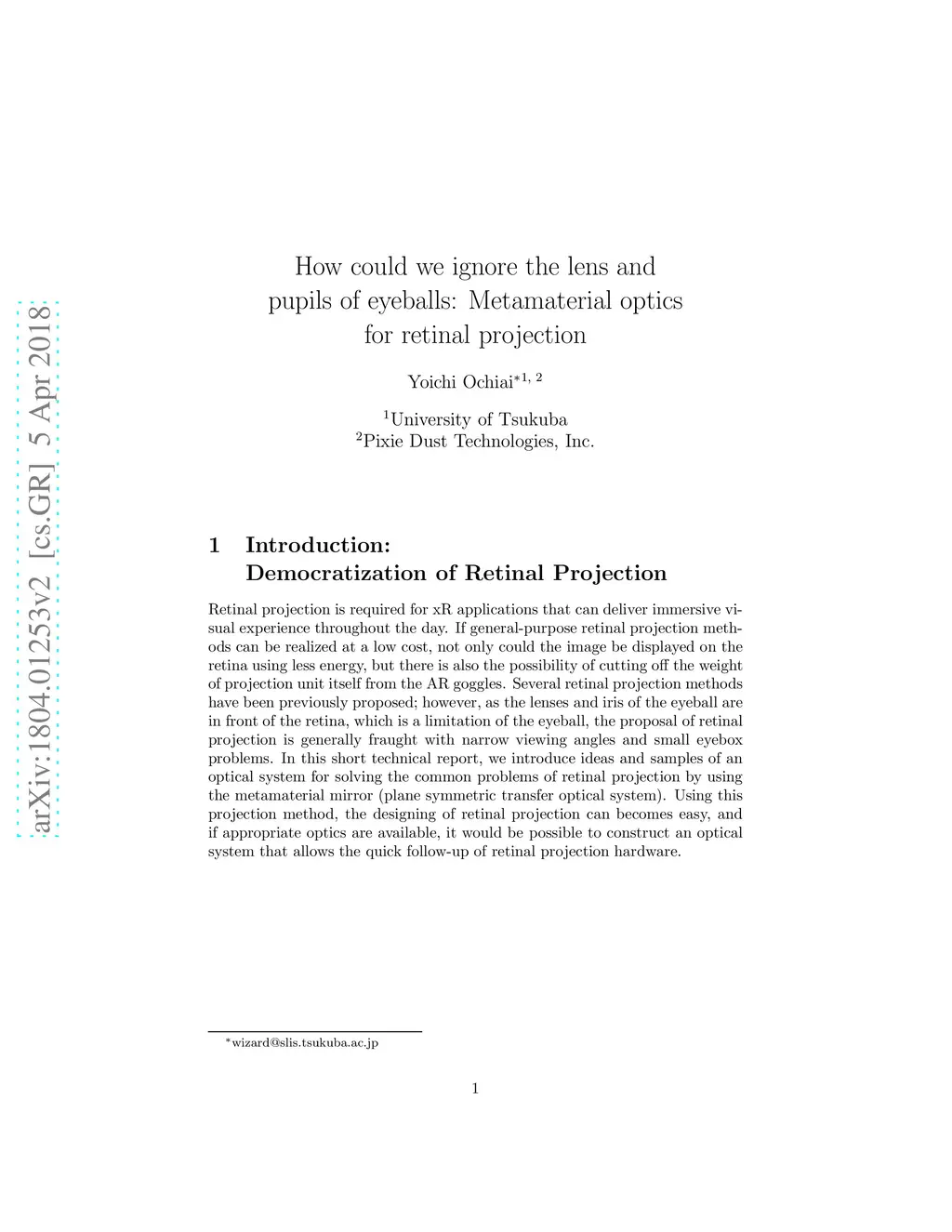 Retinal projection is required for xR applications that can deliver immersive visual experience throughout the day. If general-purpose retinal projection methods can be realized at a low cost, not only could the image be displayed on the retina using less energy, but there is also the possibility of cutting off the weight of projection unit itself from the AR goggles. Several retinal projection methods have been previously proposed; however, as the lenses and iris of the eyeball are in front of the retina, which is a limitation of the eyeball, the proposal of retinal projection is generally fraught with narrow viewing angles and small eyebox problems. In this short technical report, we introduce ideas and samples of an optical system for solving the common problems of retinal projection by using the metamaterial mirror (plane symmetric transfer optical system). Using this projection method, the designing of retinal projection can becomes easy, and if appropriate optics are available, it would be possible to construct an optical system that allows the quick follow-up of retinal projection hardware.